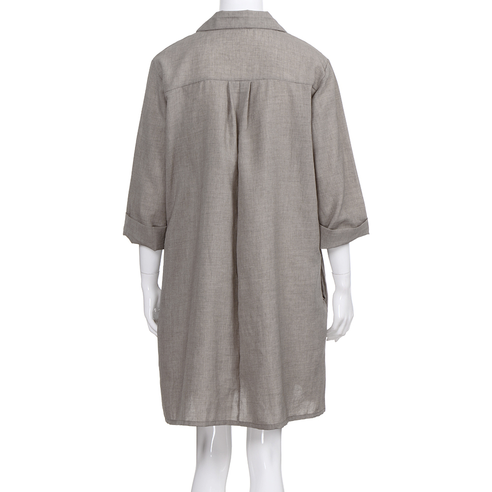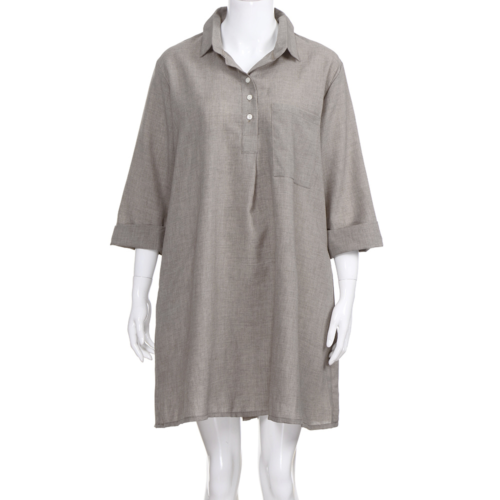 • 100% Linen Fabric Large Size Three Quarter Sleeve Collar Collar Collar Dress Vacation Dress