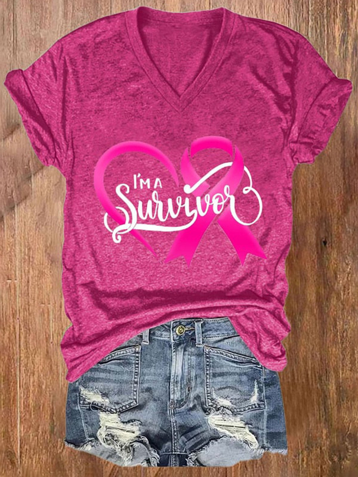 Breast Cancer Red Ribbon Awareness V-Neck T-Shirt