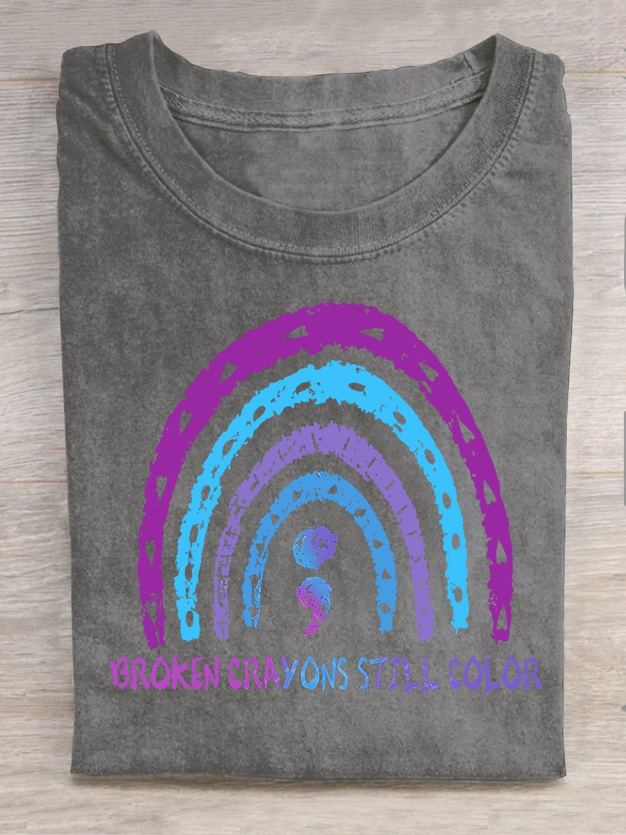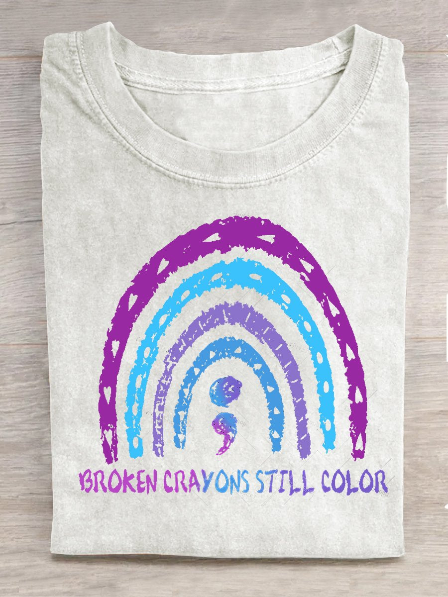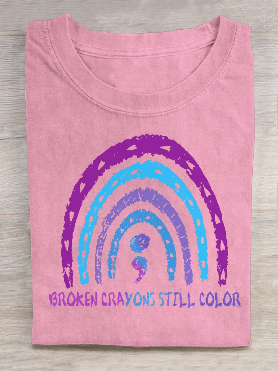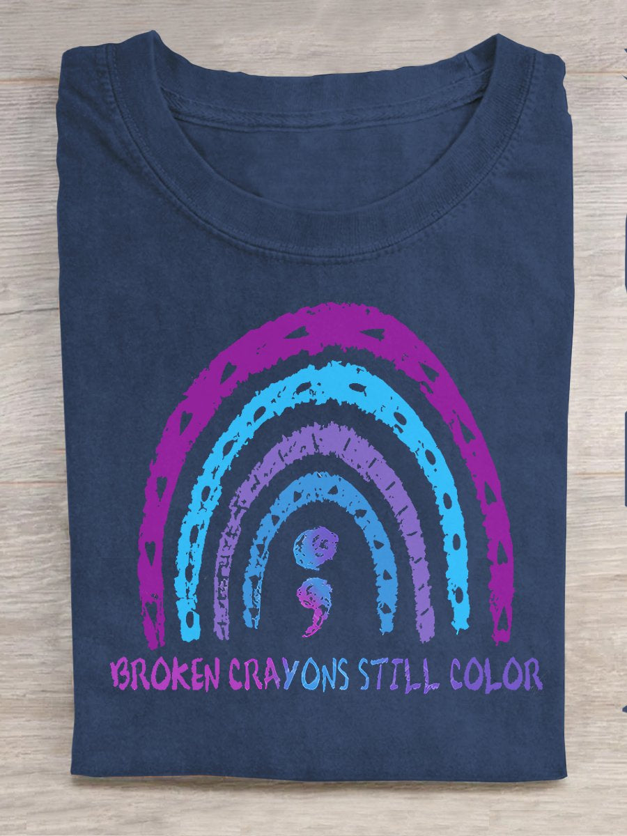 • Broken Crayons Still Color Semicolon Suicidal Prevention Print Casual T-shirt