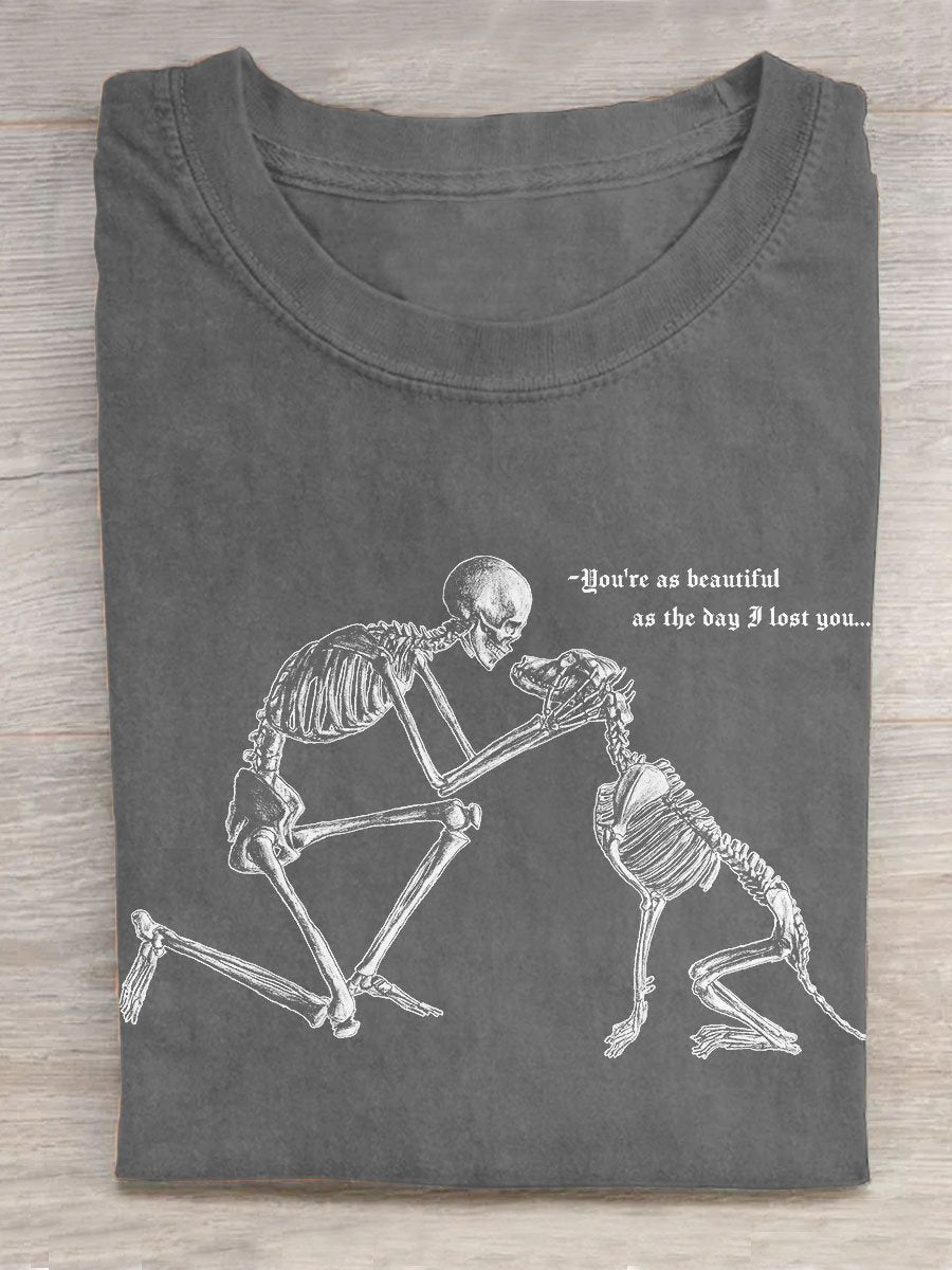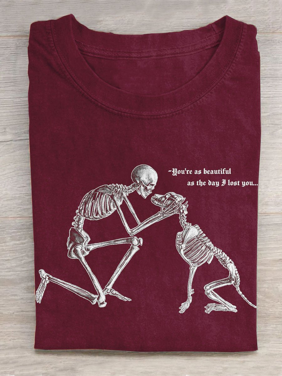 • Dog And Human Skull You're As Beautiful As The Day I Lost You Art Print Design T-shirt