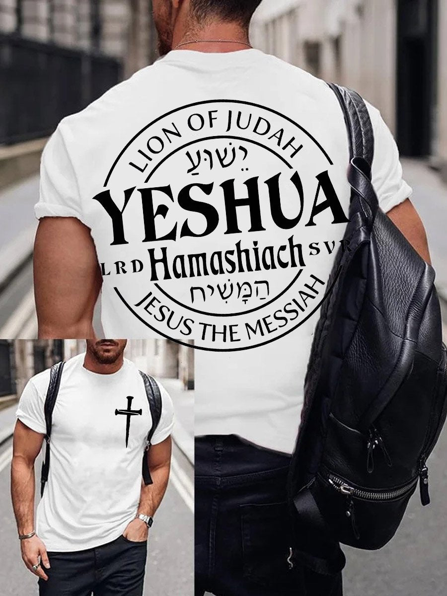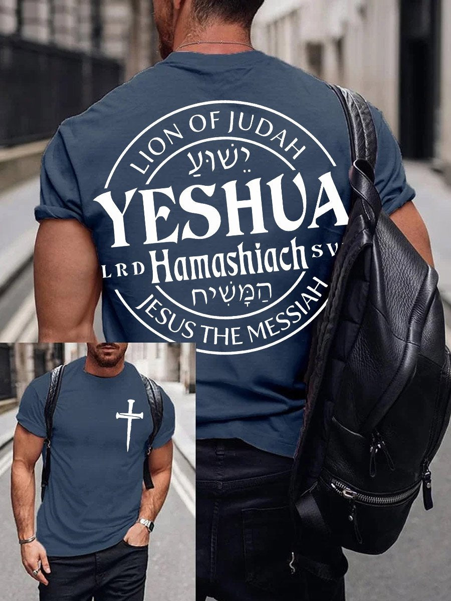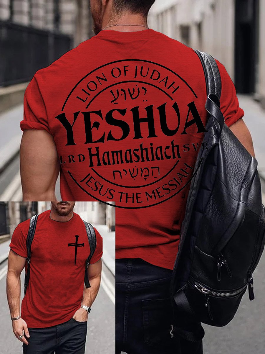Men's Yeshua Hamashiach Jesus The Messiah Lion Of Judah Faith Cross Print T-Shirt