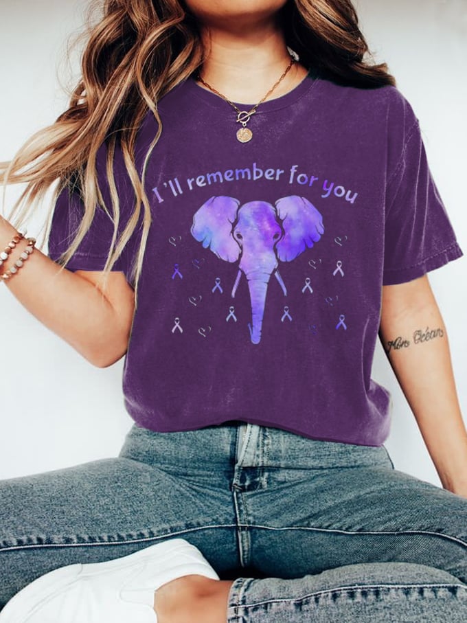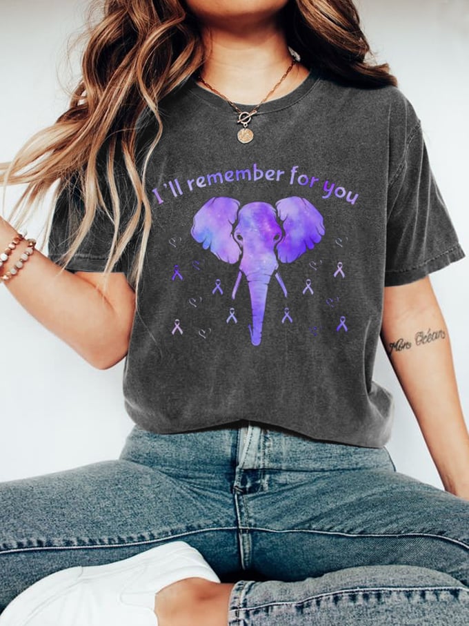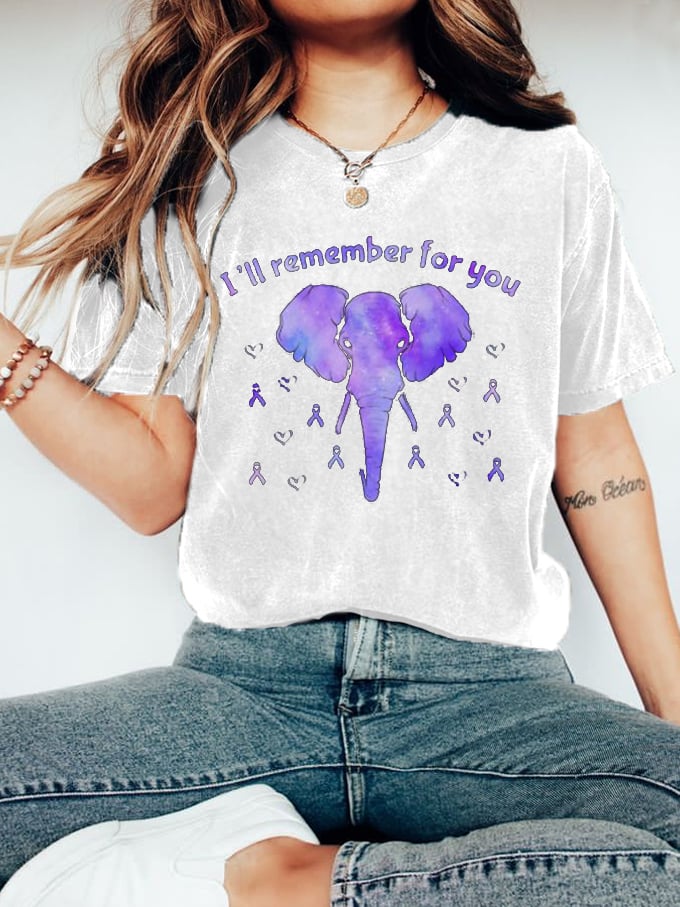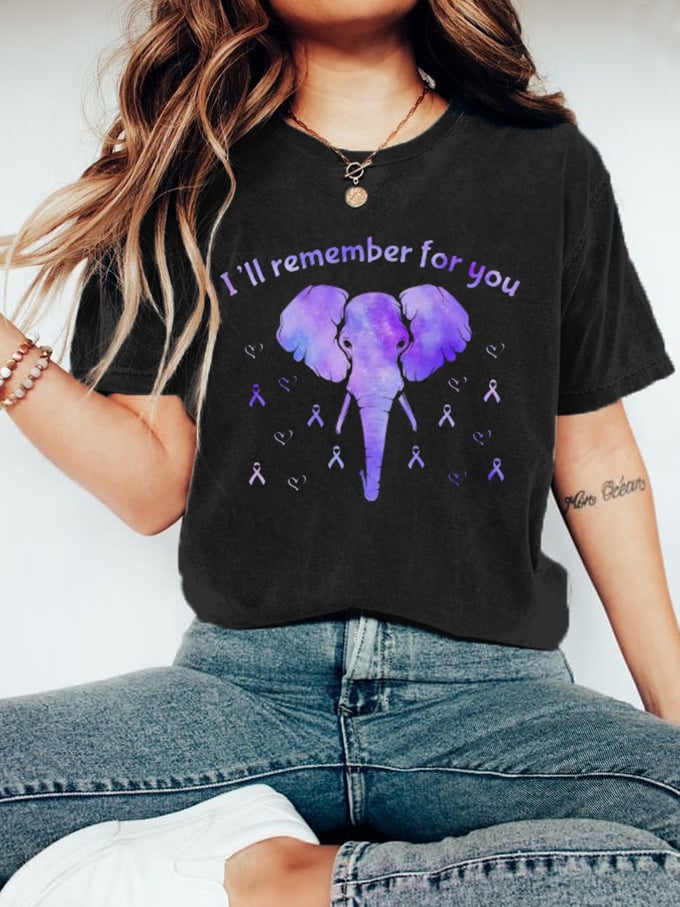 Women's I Will Remember For You Dementia Alzheimer's Disease Awareness Print T-Shirt