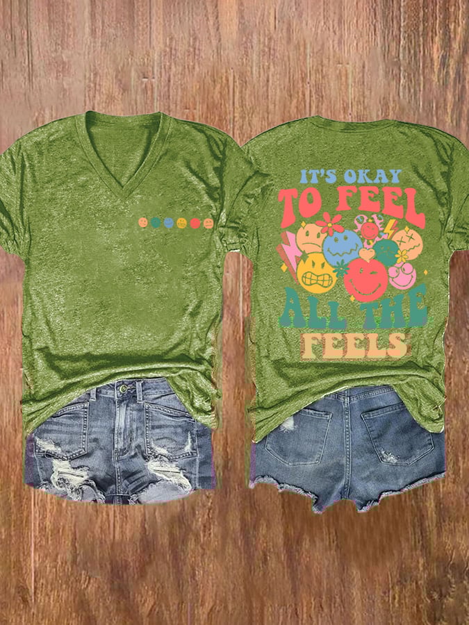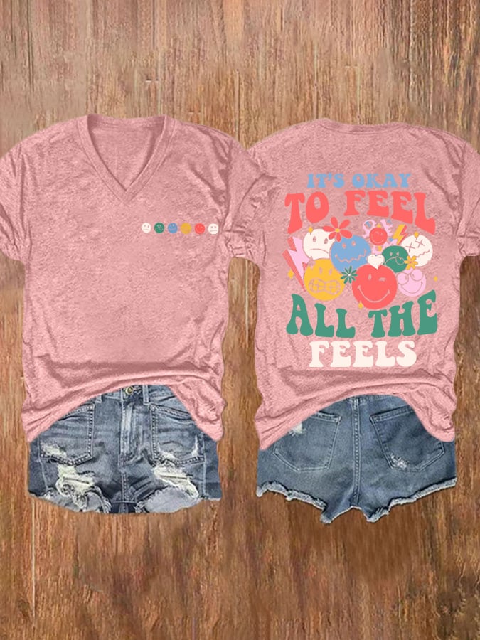 Women's It's Okay To Feel All The Feels Print Casual T-Shirt