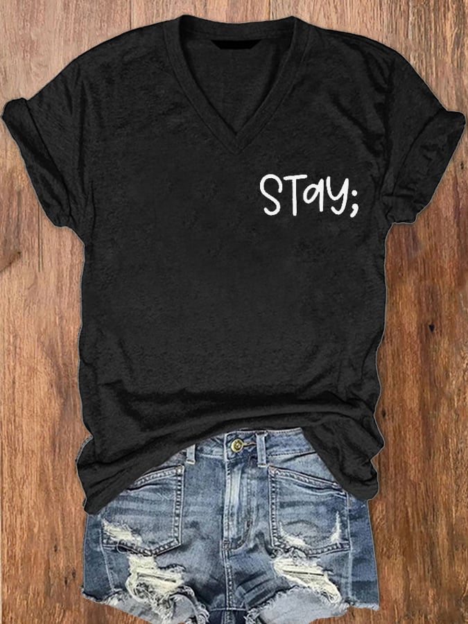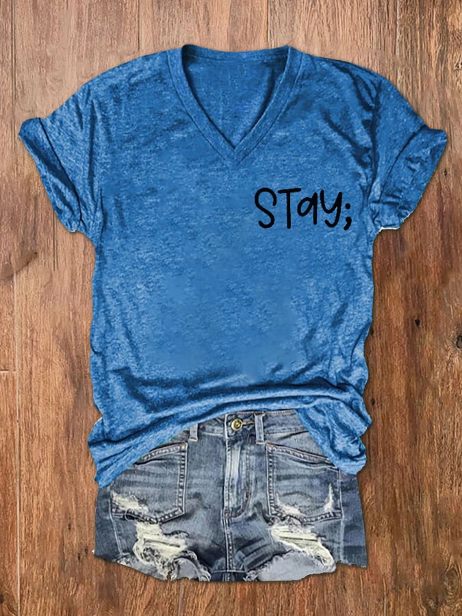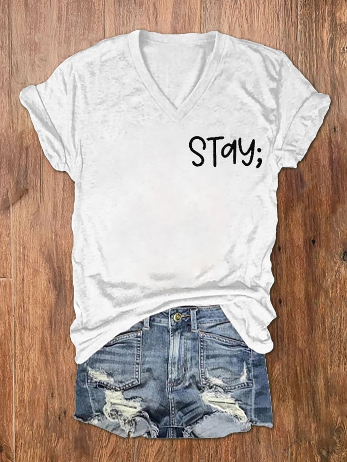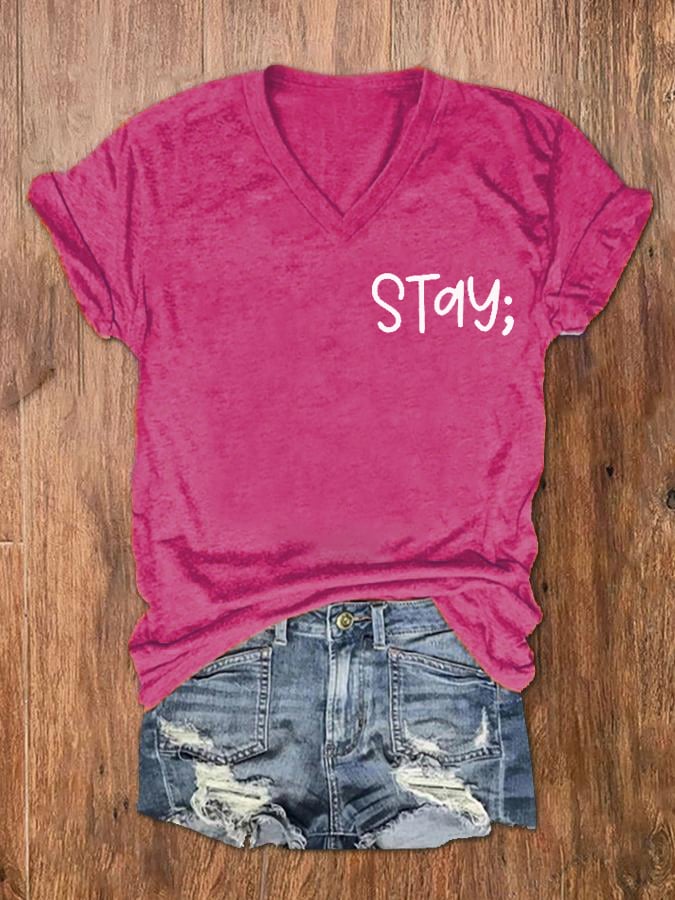 • Women's Stay The World Is Better With You In It Suicide Awareness Print V-Neck T-Shirt