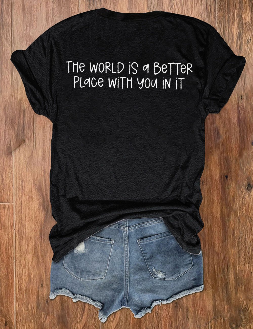 Women's Stay The World Is Better With You In It Suicide Awareness Print V-Neck T-Shirt