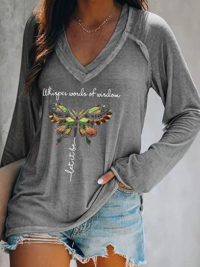 Women's Whisper Word Of Wisdom Let It Be Print V-neck T-shirt