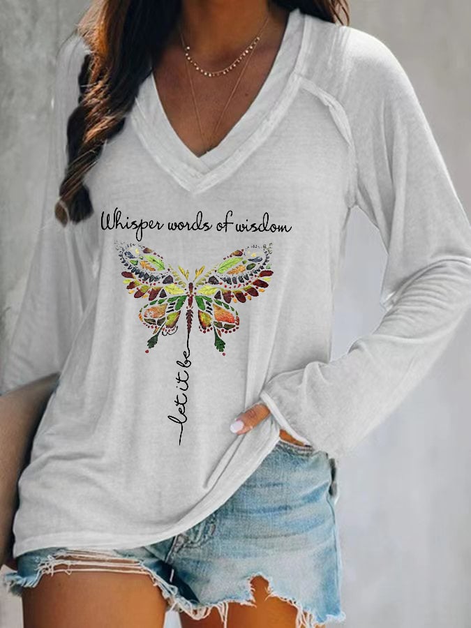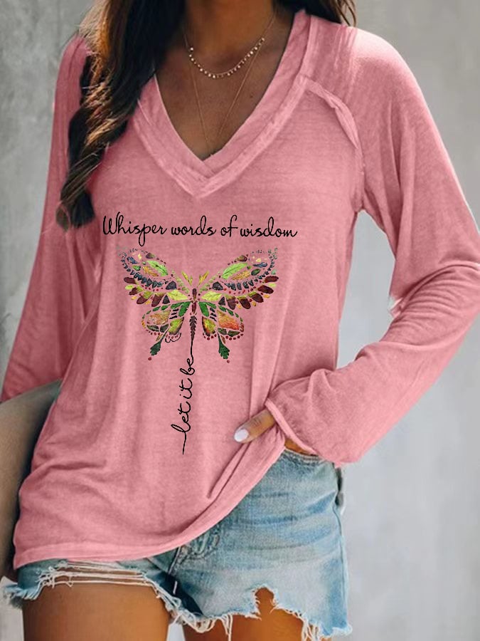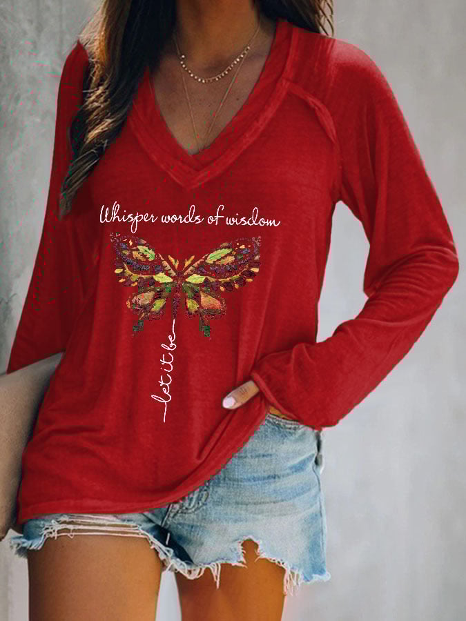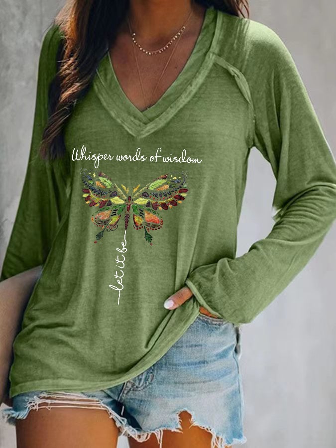 • Women's Whisper Word Of Wisdom Let It Be Print V-neck T-shirt