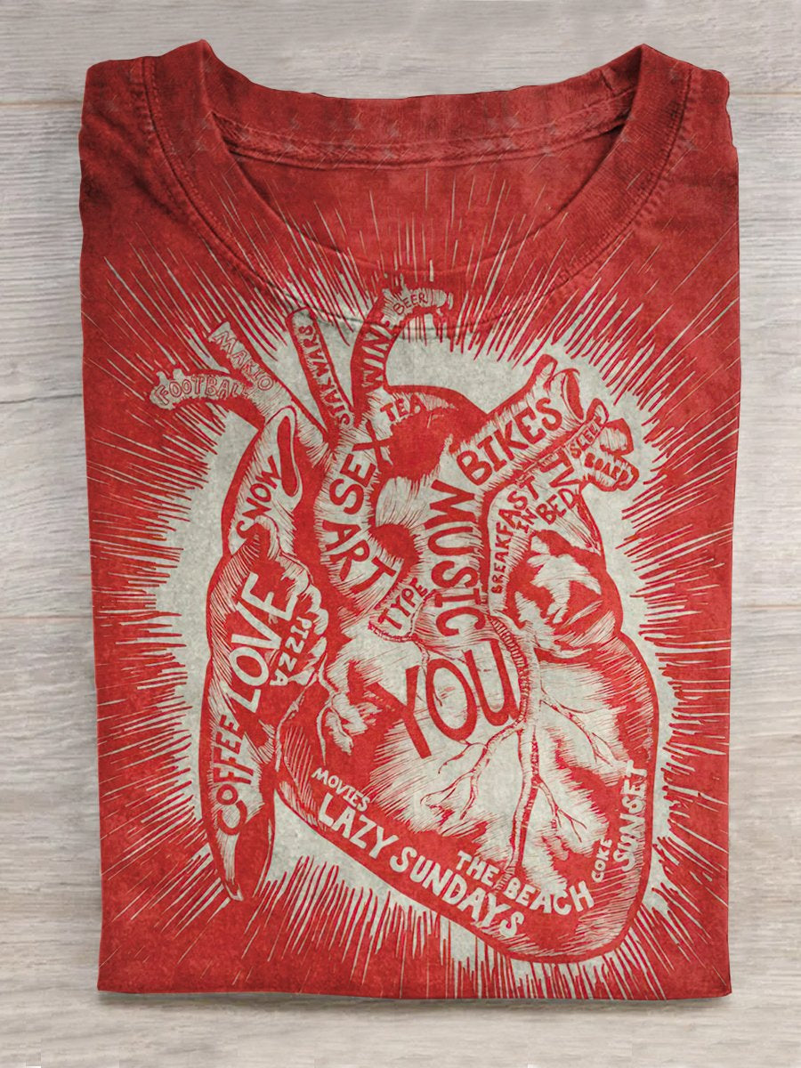 Retro Love Art Print Casual T-shirt