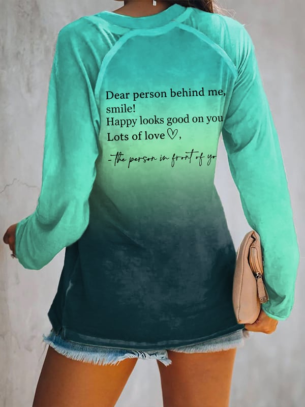 Women's Dear Person Behind Me Smile Ombre Print Casual T-Shirt
