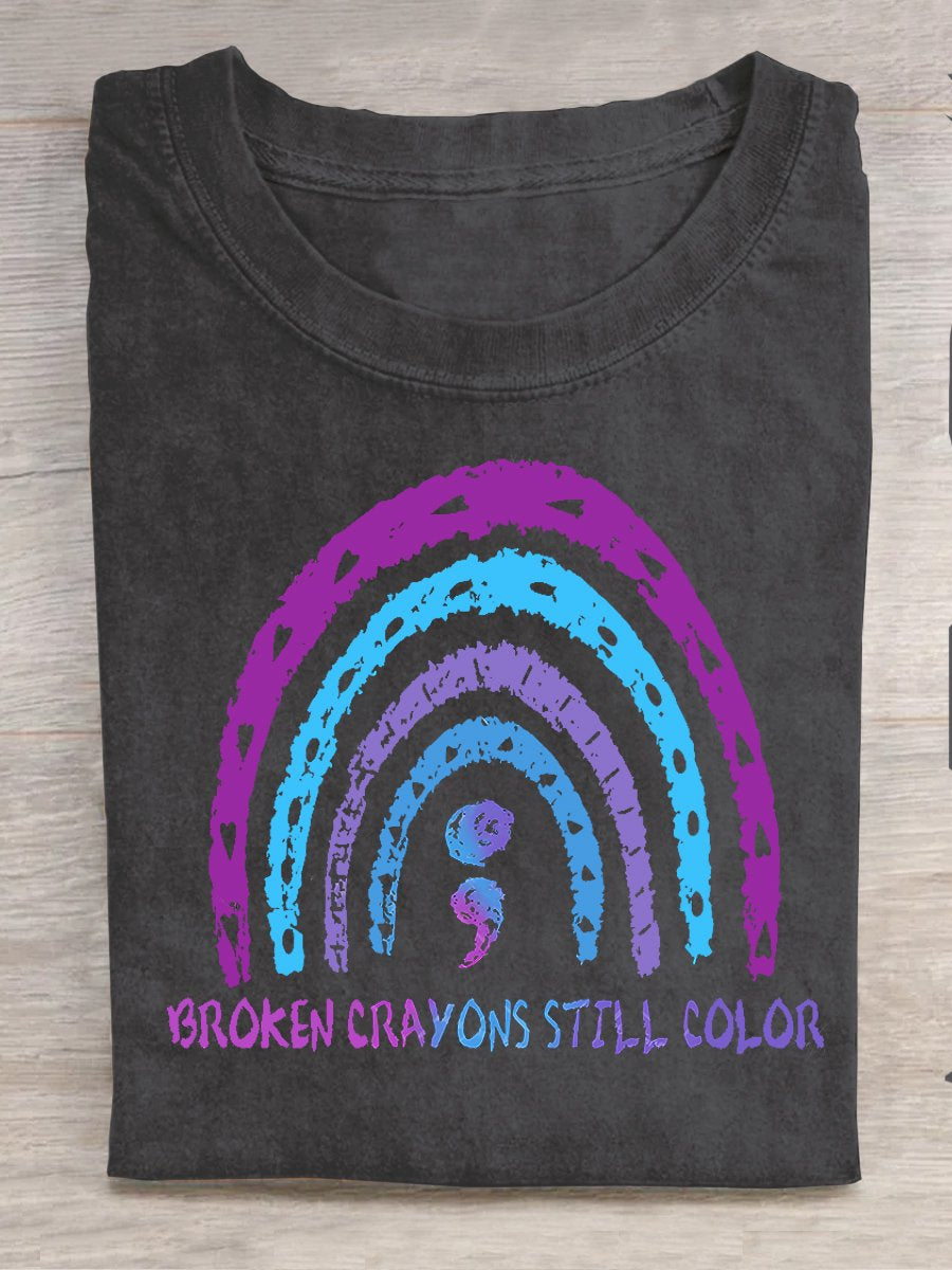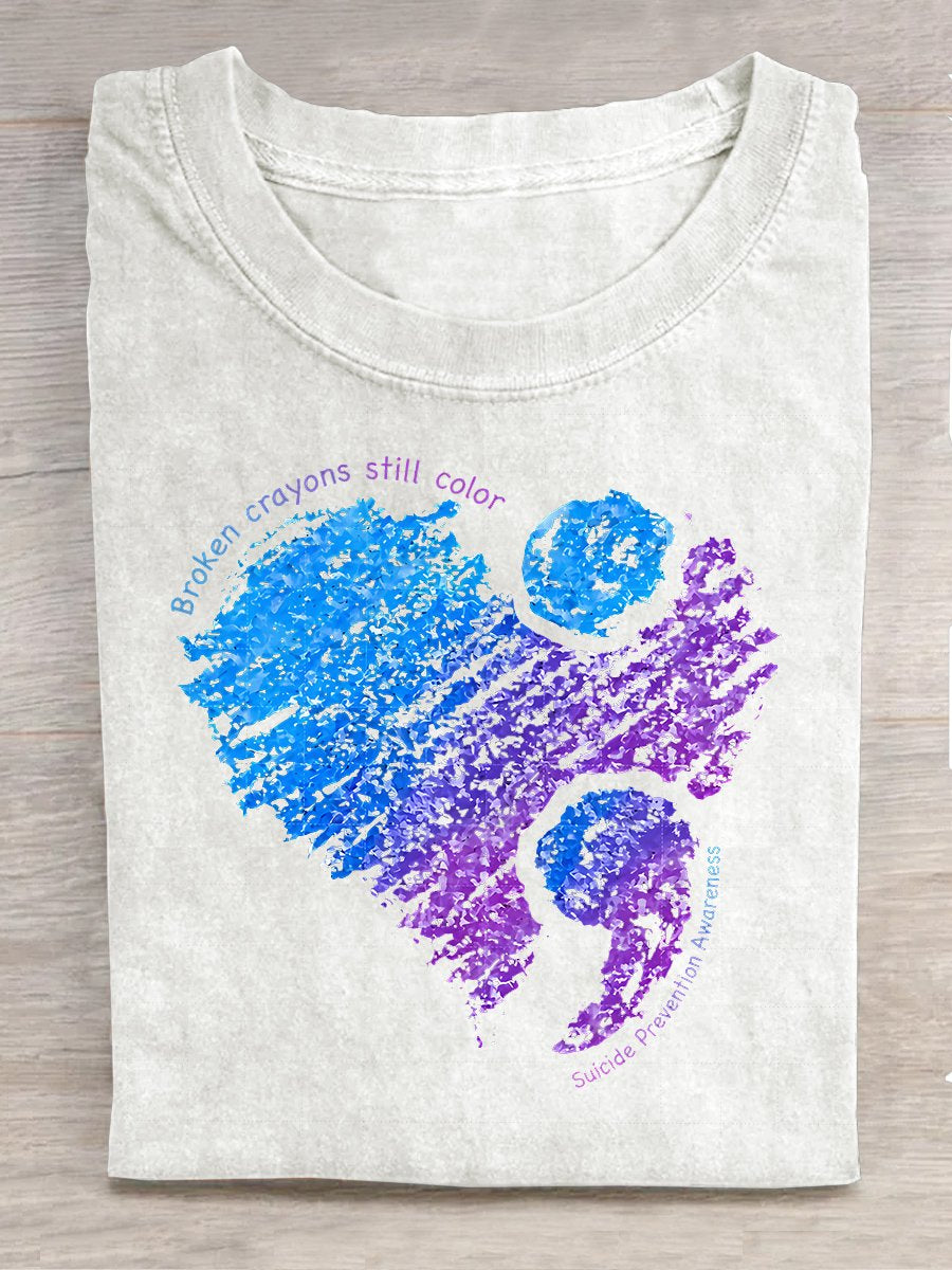 Broken Crayons Still Color Semicolon Suicidal Prevention Print Casual T-shirt