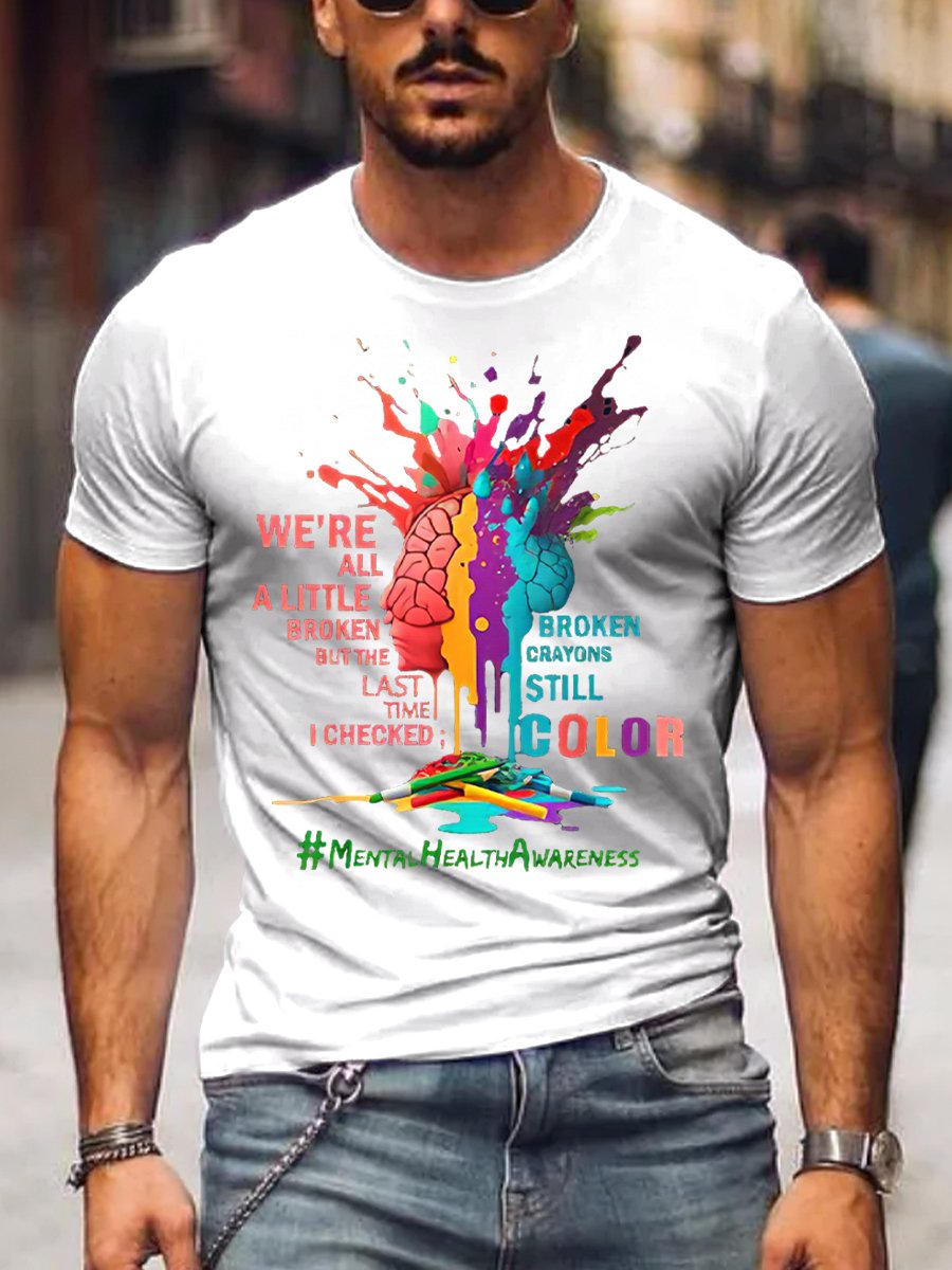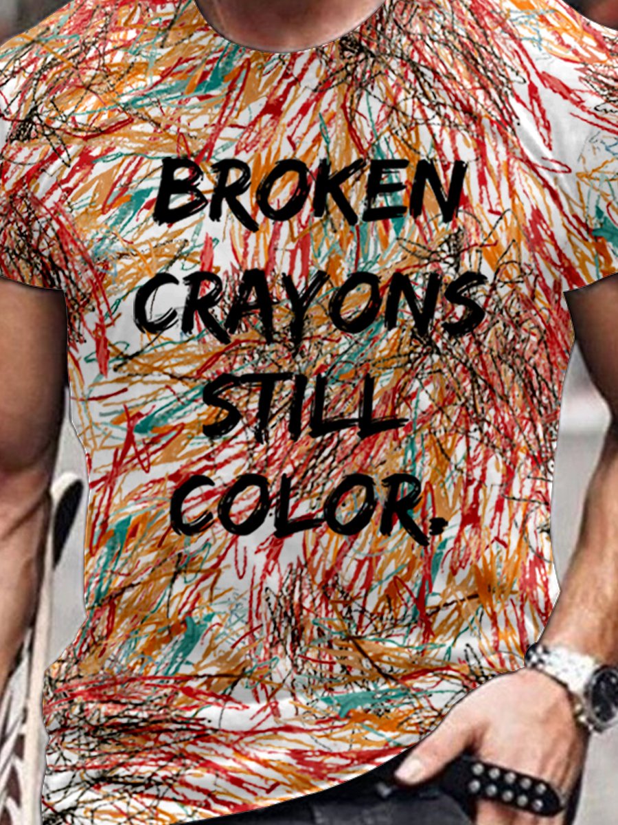 Men's Mental Health Awareness Broken Crayons Still Color Encourage Print Casual T-Shirt