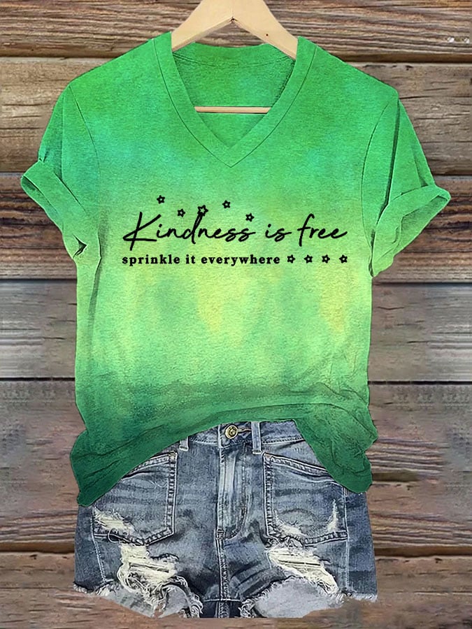 Women's Kindness Is Free Sprinkle It Everywhere Mental Health Awareness Printed V Neck T-Shirt
