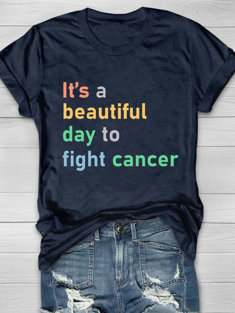 It's A Beautiful Day To Fight Cancer Print T-Shirt