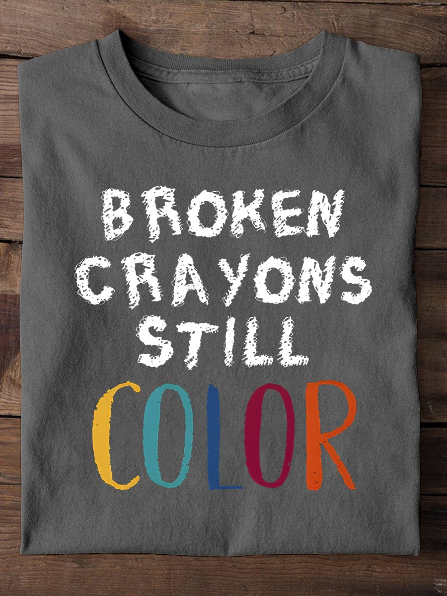 Broken Crayons Still Color Print Casual T-shirt