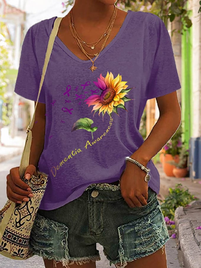 Women's I'll Remember For You Dementia Alzheimer's Disease Awareness Print V-Neck T-Shirt
