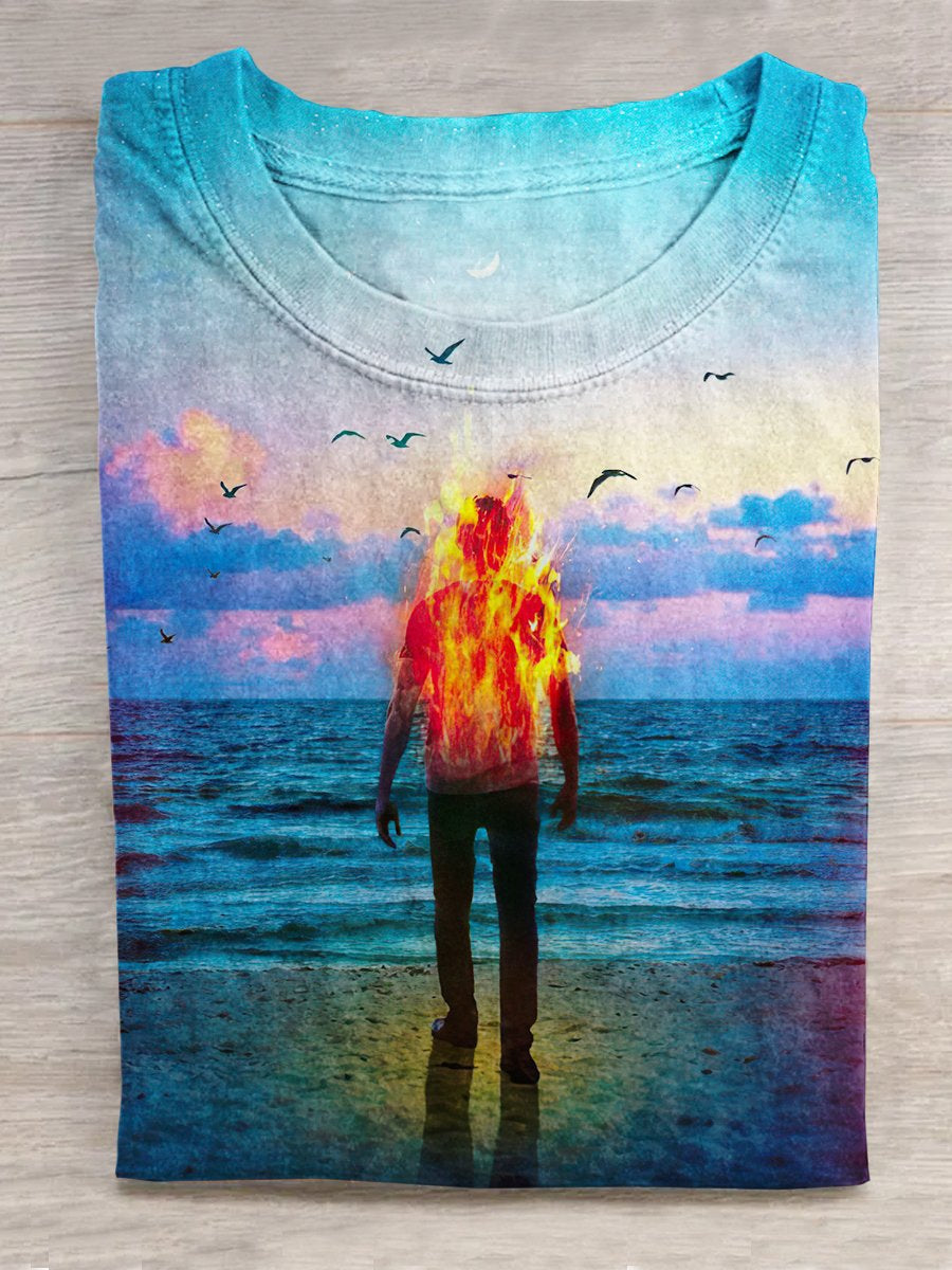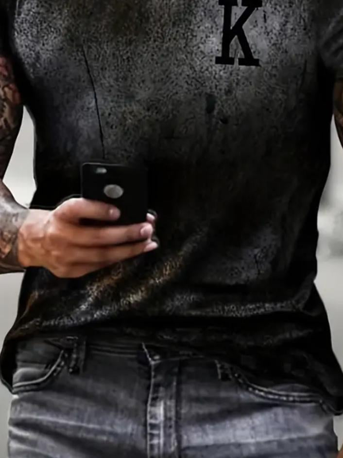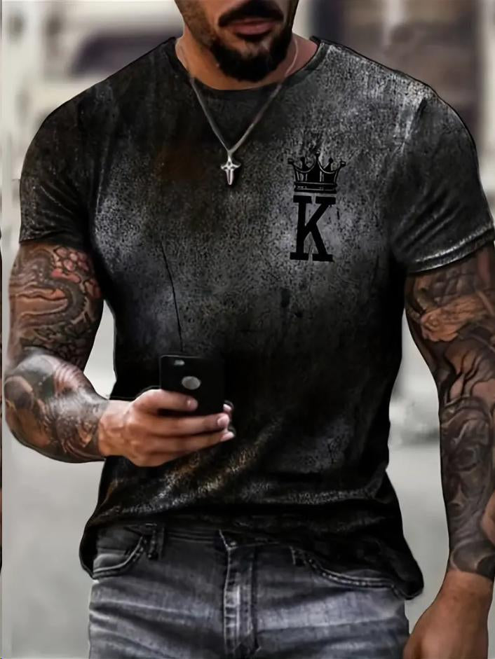 Men's Retro Crown King K Print Casual T-Shirt