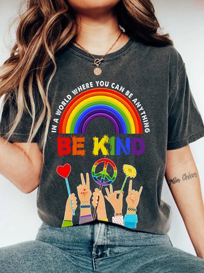 Retro Hippie In A World Where You Can Be Anything Be Kind Print T-Shirt