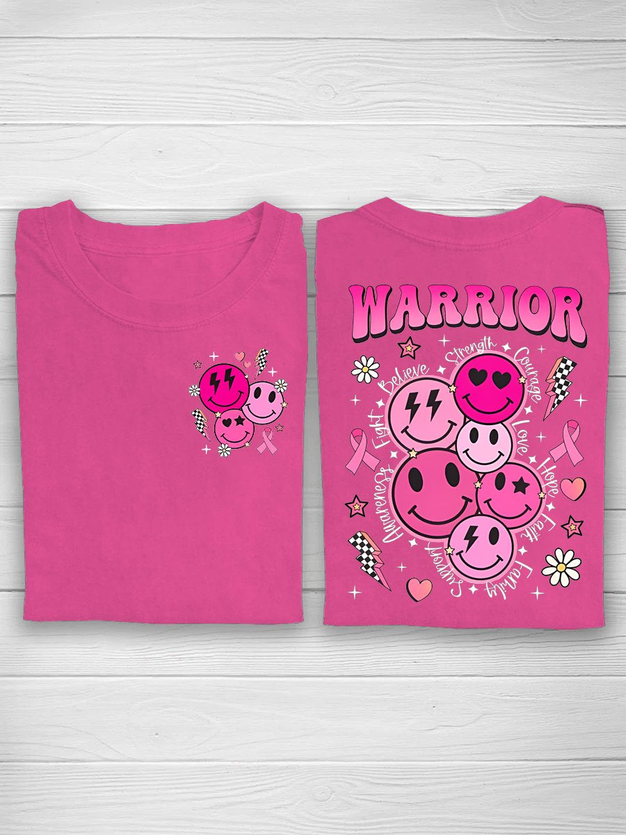 Pink Smiley Face Retro Breast Cancer Warrior T-shirt