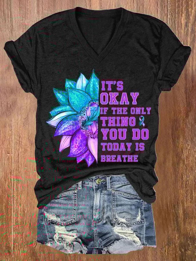 Women's It's Okay If The Only Thing You Do Today Is Breathe Sunflower Print T-Shirt