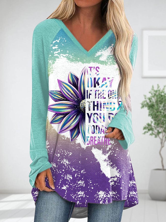Women's It's Okay If The Only Thing You Do Today Is Breathe Sunflower V-Neck Long Sleeve T-Shirt