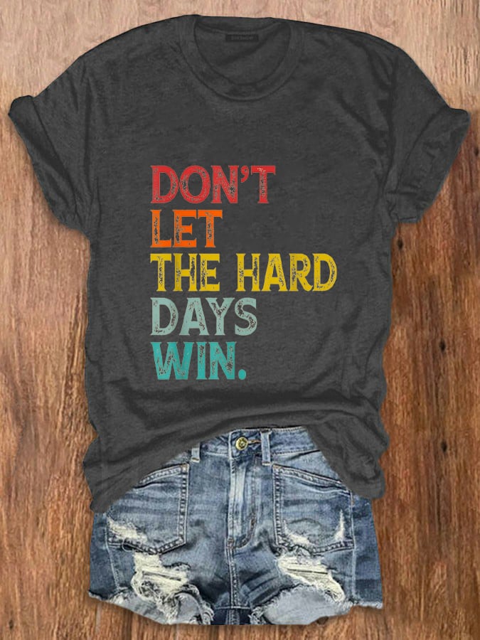 Women Don't Let The Hard Days Win Printed Crew Neck T-Shirt