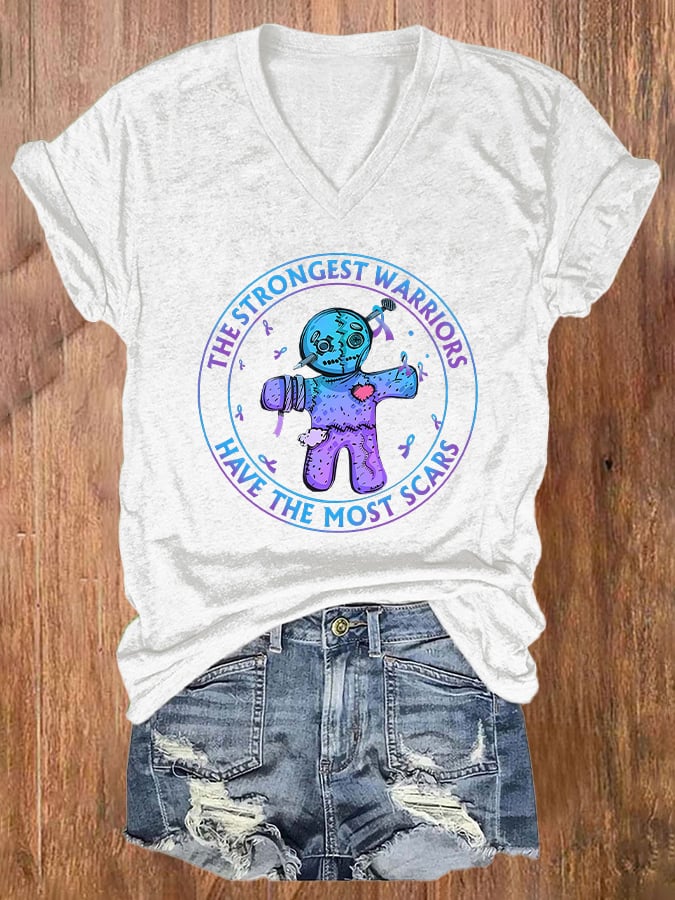 Women'S The Strongest Warriors Have The Most Scars Print Short Sleeve Casual T-Shirt