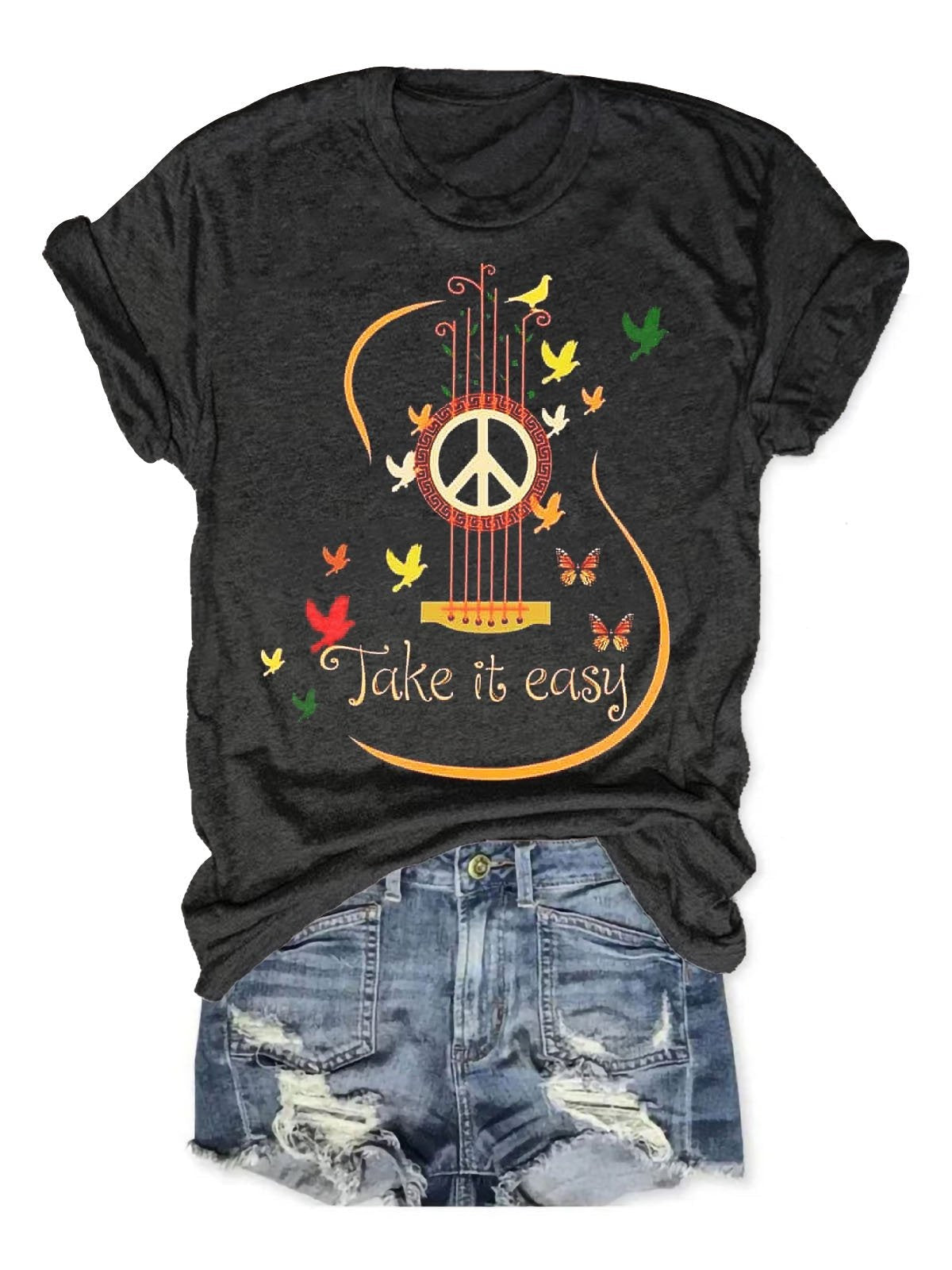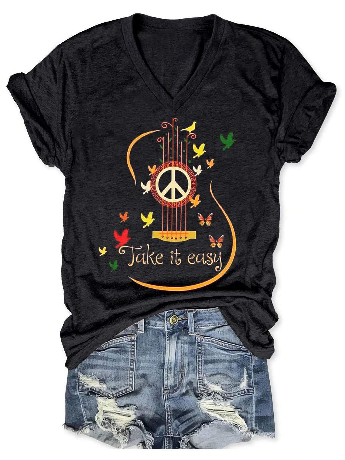 Take It Easy Art Print V-neck Casual T-Shirt
