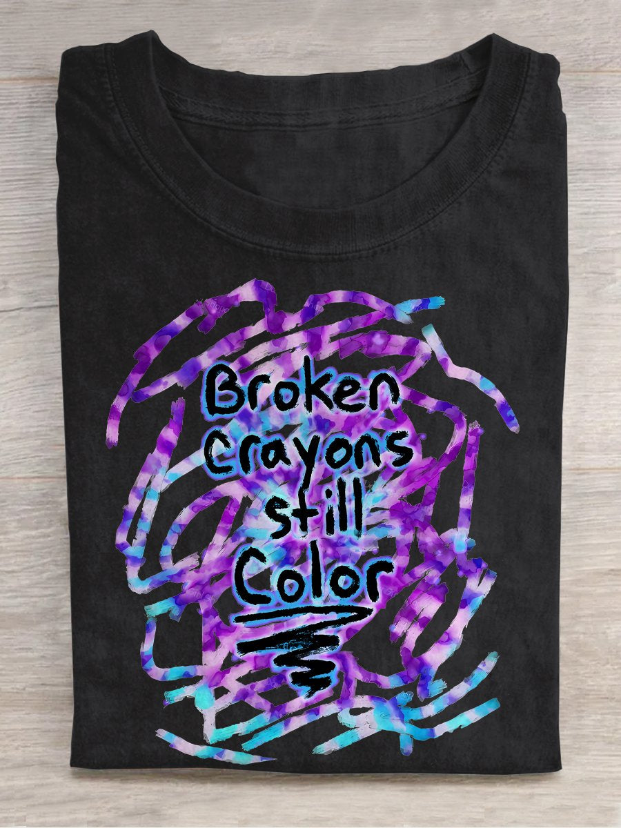 Broken Crayons Still Color Semicolon Suicidal Prevention Ribbon Suicide Depression Mental Health Prevention Suicide Awareness T-shirt