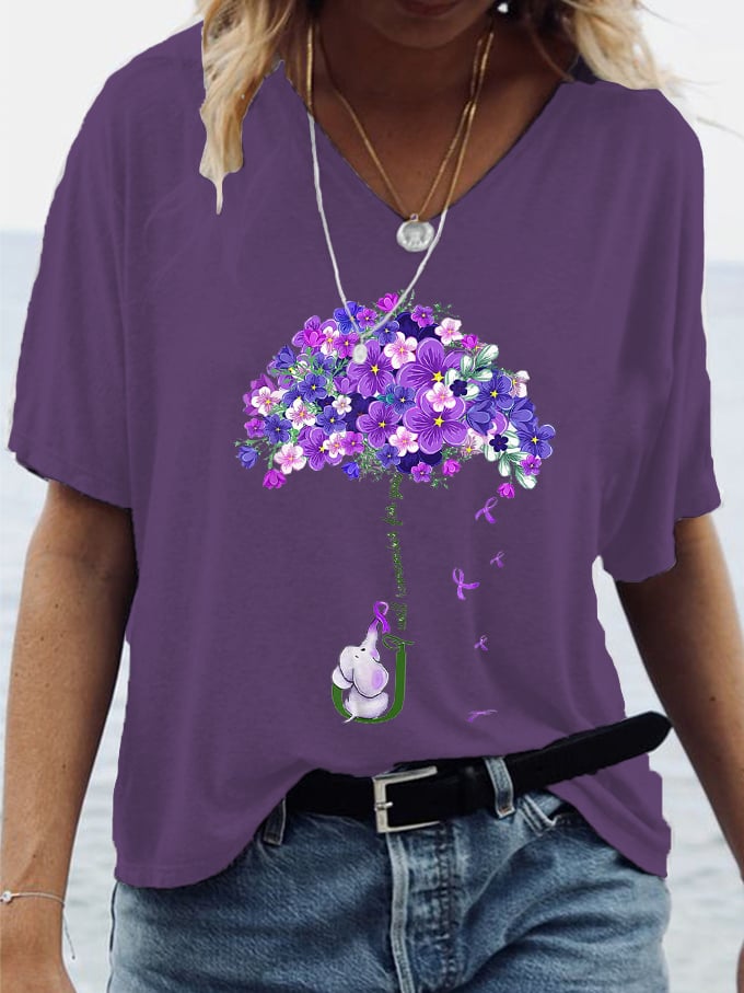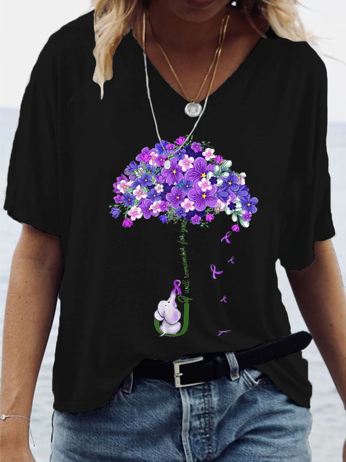 Women's I Will Remember For You Alzheimer's Disease Awareness Dementia Print V-Neck T-Shirt
