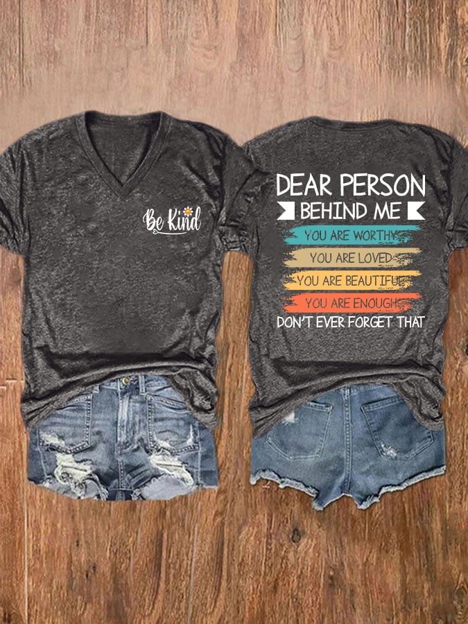 🔥BUY 3 GET 10% OFF🔥V-neck Dear Person Behind Me, You Are Worthy ,Loved , Beautiful, Enough Don't Ever Forget Print T-Shirt