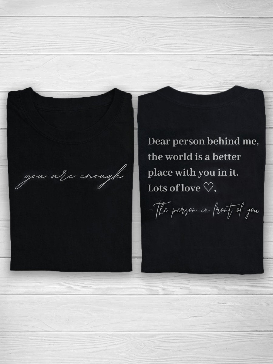 You Are Enough, Dear Person Behind Me Print Casual T-shirt