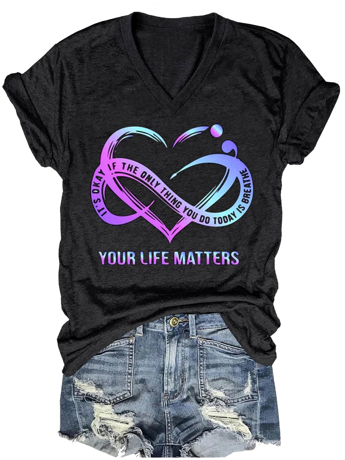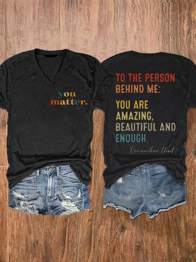Women's You Matter To The Person Behind Me, You Are Amazing Print V-Neck T-Shirt