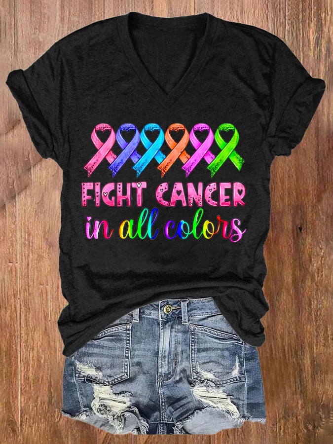 Women's Breast cancer Fight Cancer In all Colors Printed Casual T-shirt