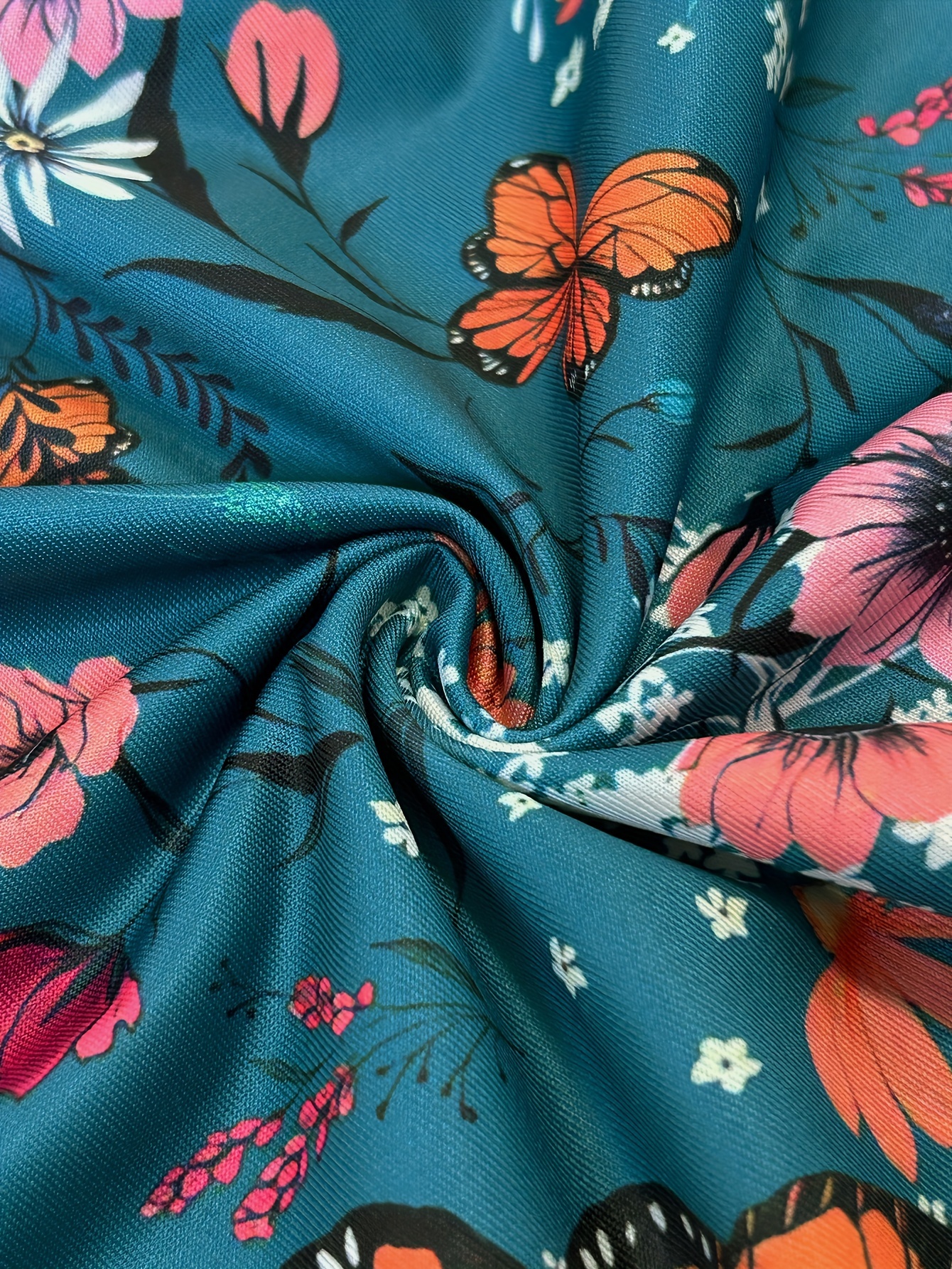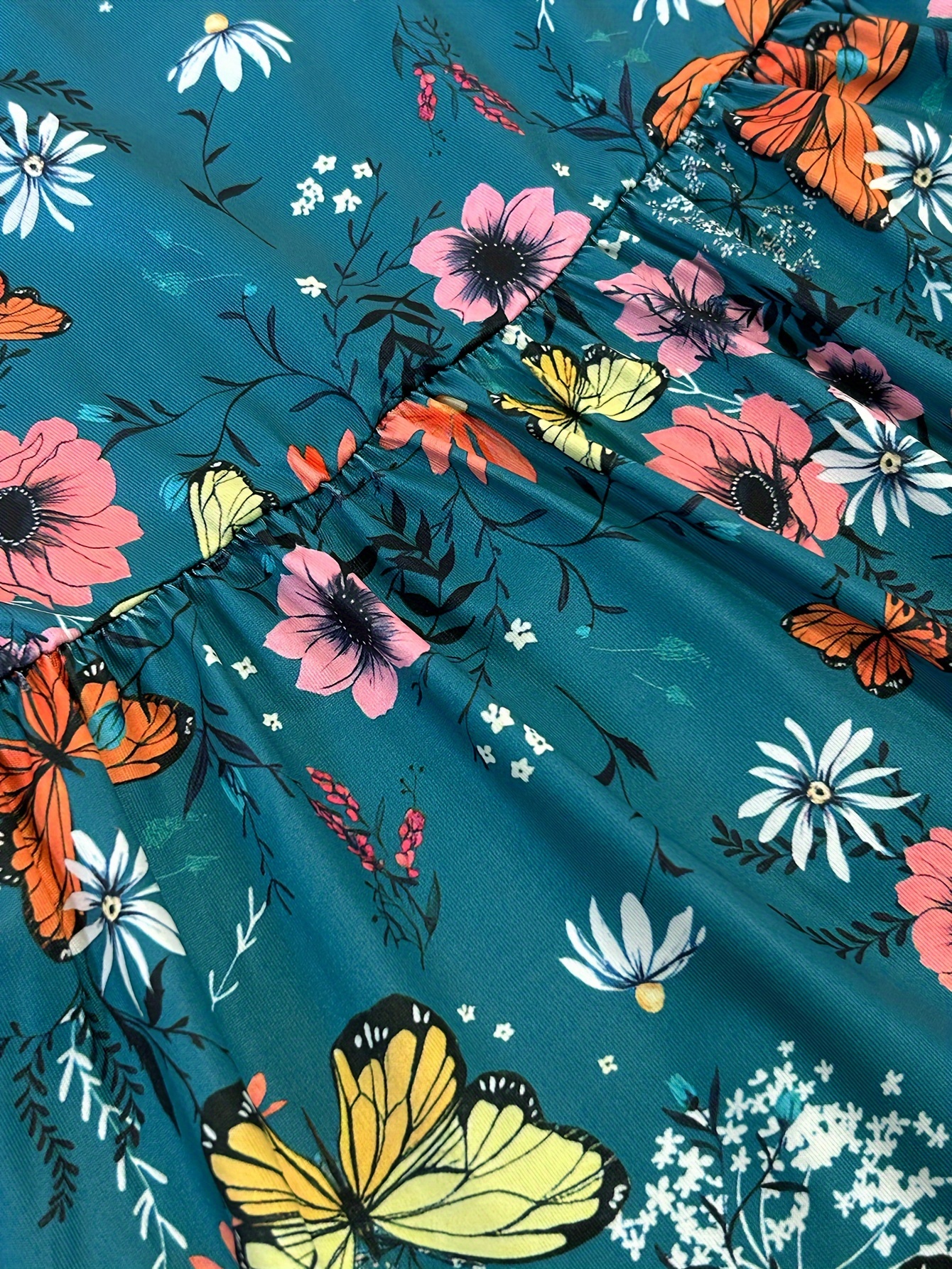 Butterfly & Flower Print Tank Top, Casual V Neck Sleeveless Flare Top For Summer, Women's Clothing