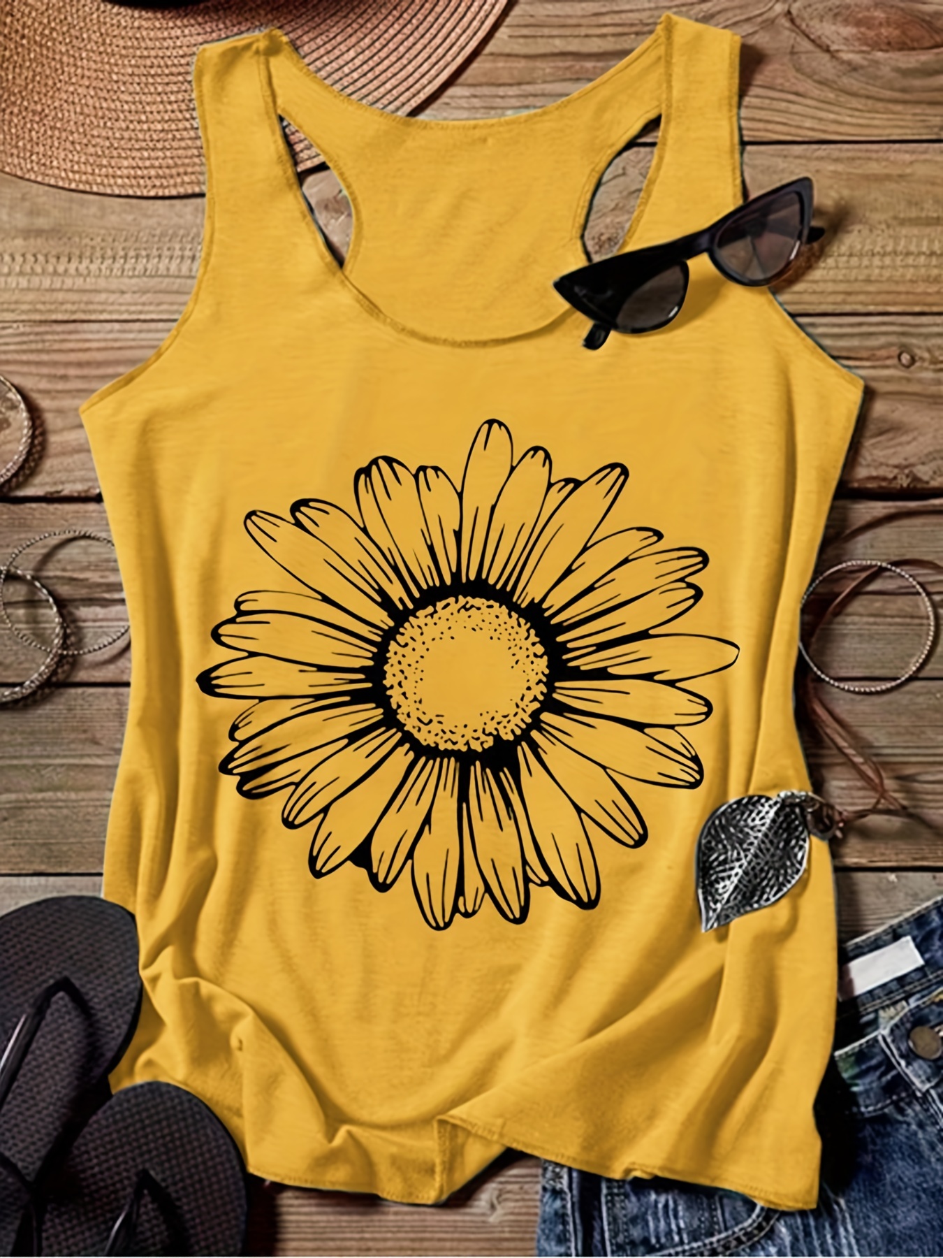 • Chic Floral Print Tank Top - Stylish Sleeveless Crew Neck - Lightweight Summer Wear for Women - Fashionable Casual Clothing
