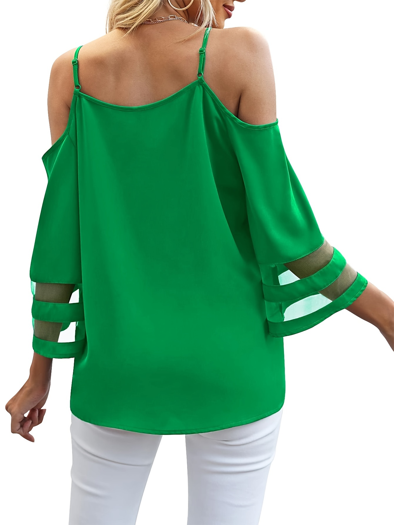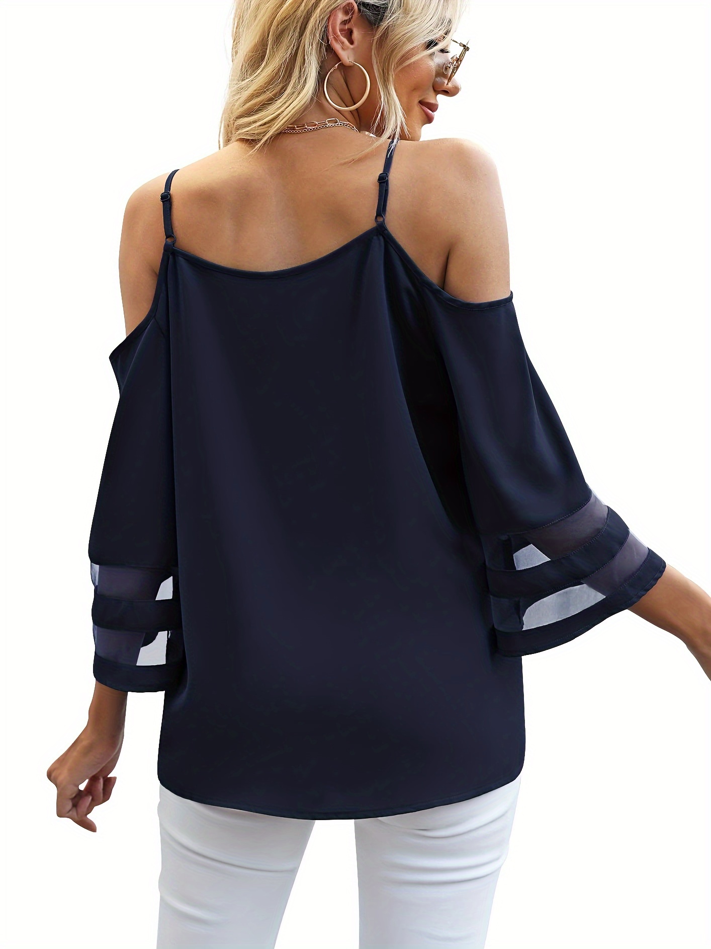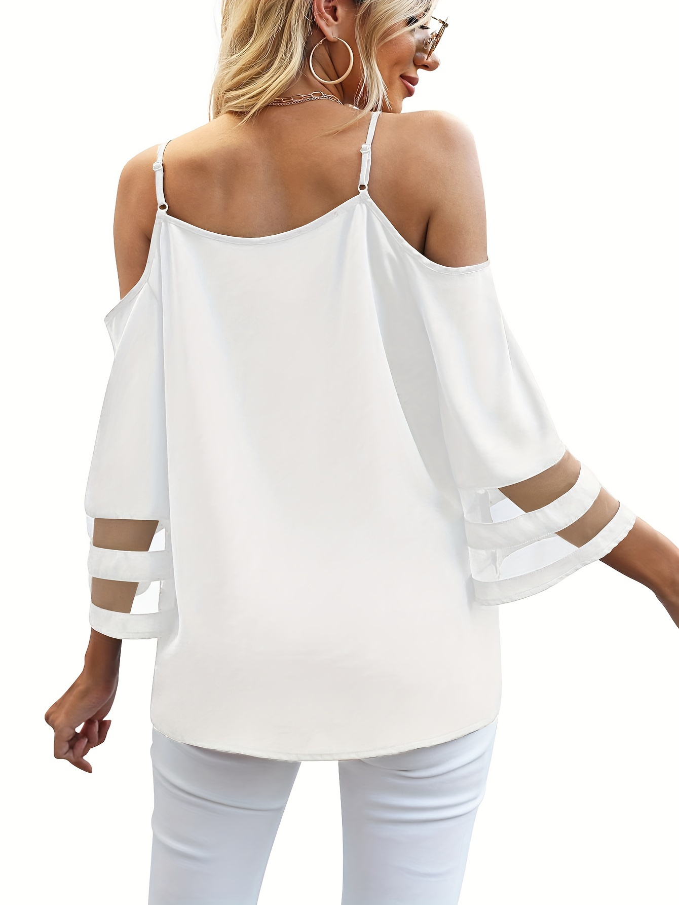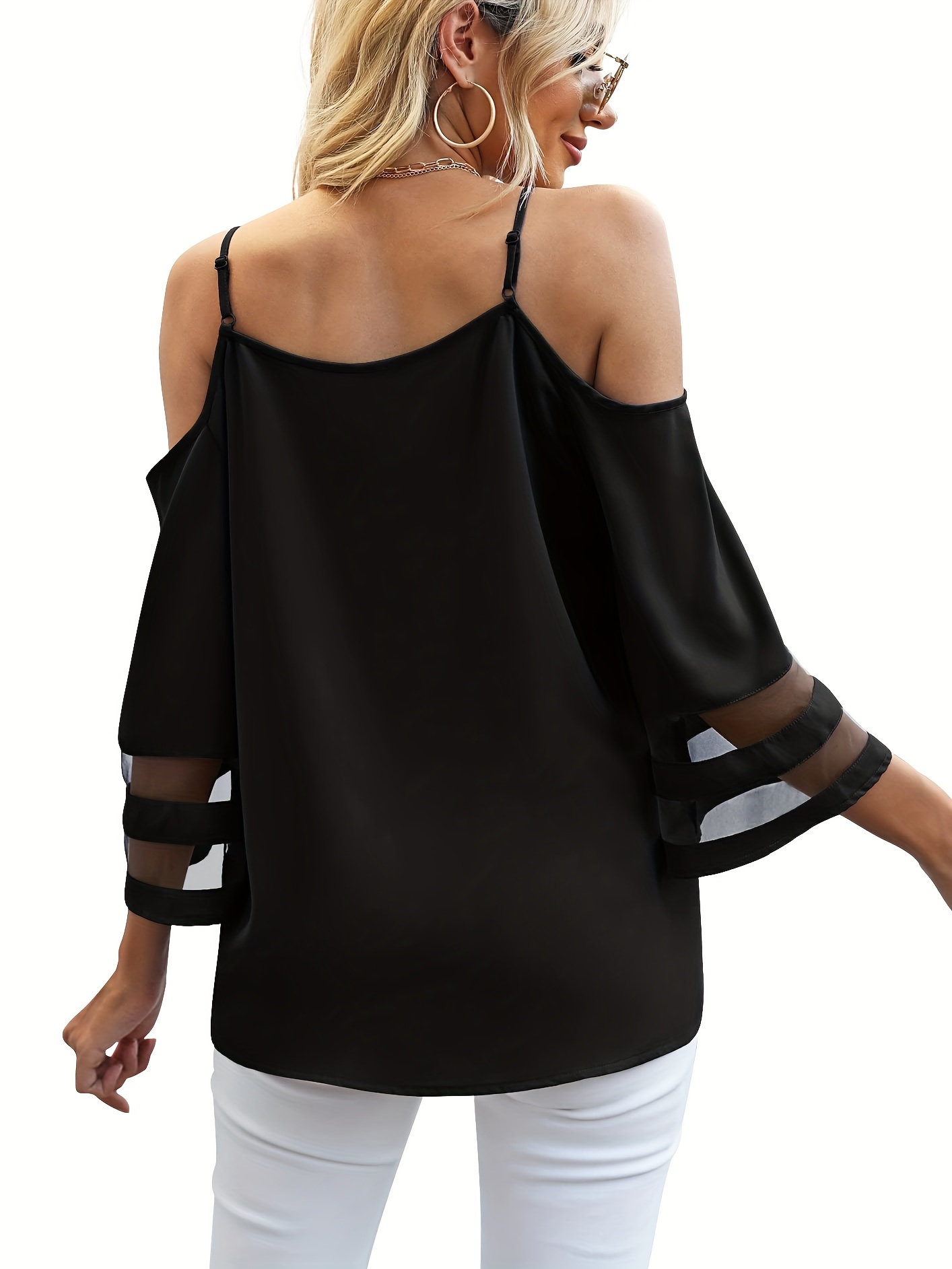 • Chic Sheer Panel Spaghetti Strap Top - Breezy Off-Shoulder Design for Spring/Summer - Stylish Womens Wear