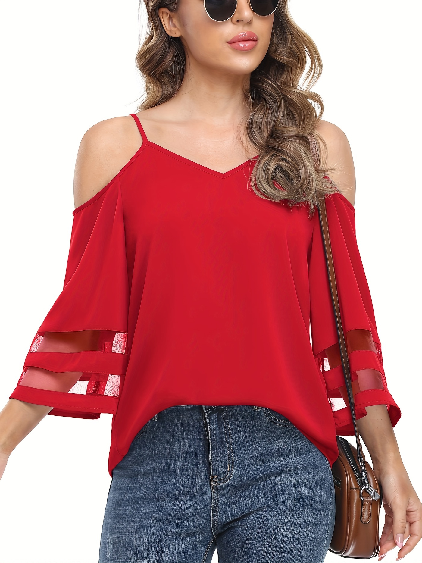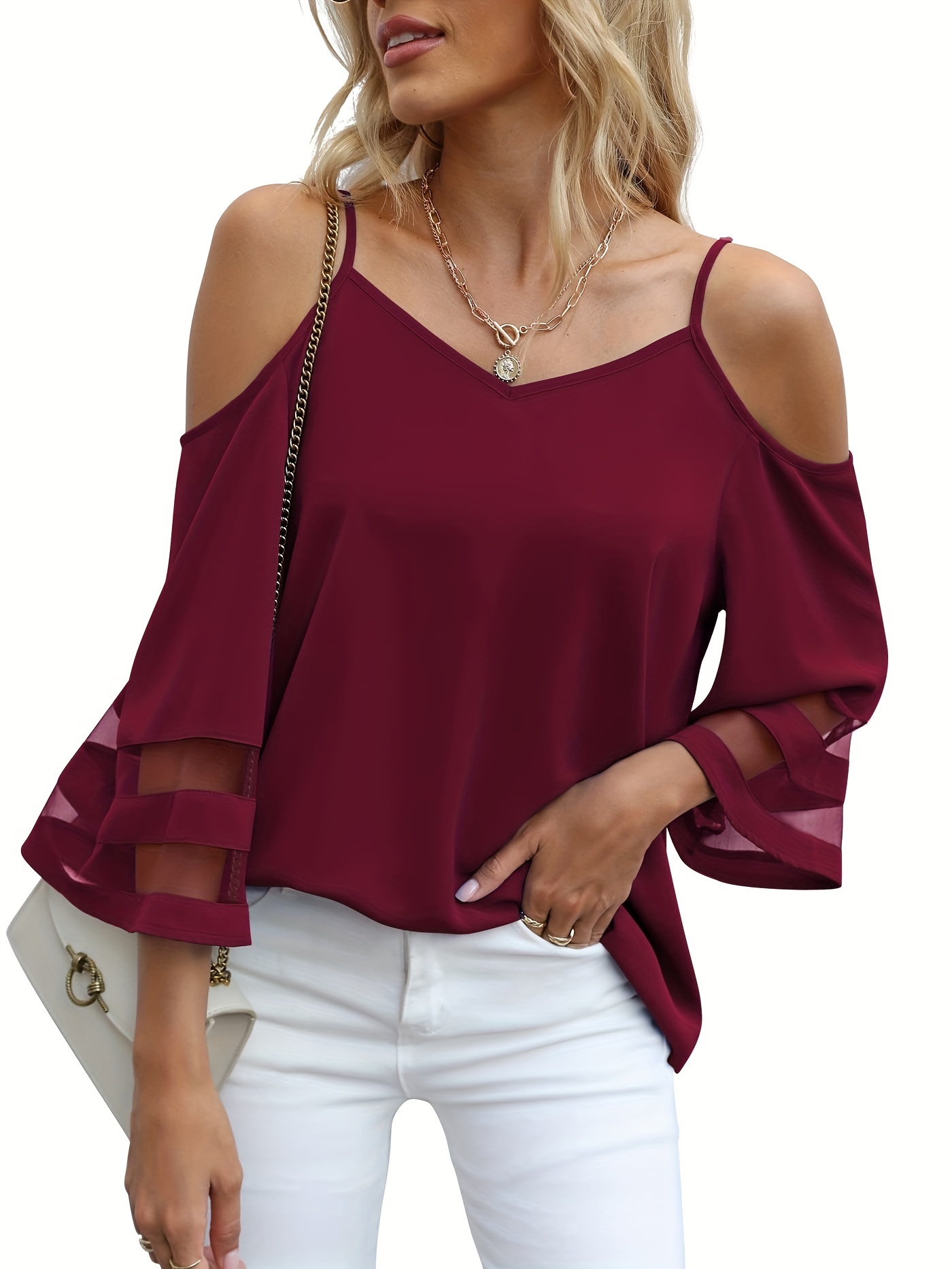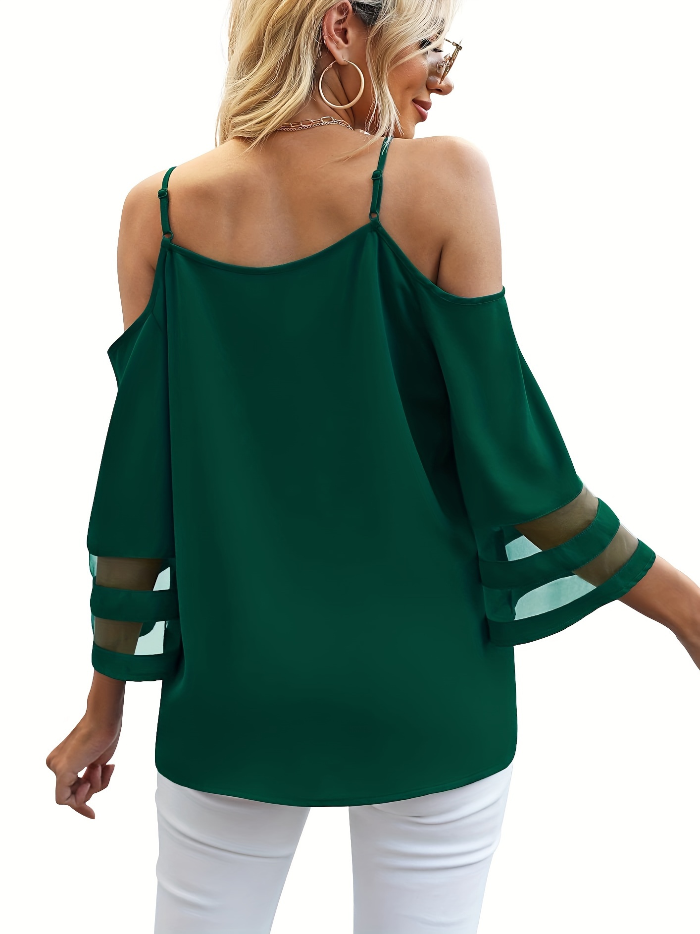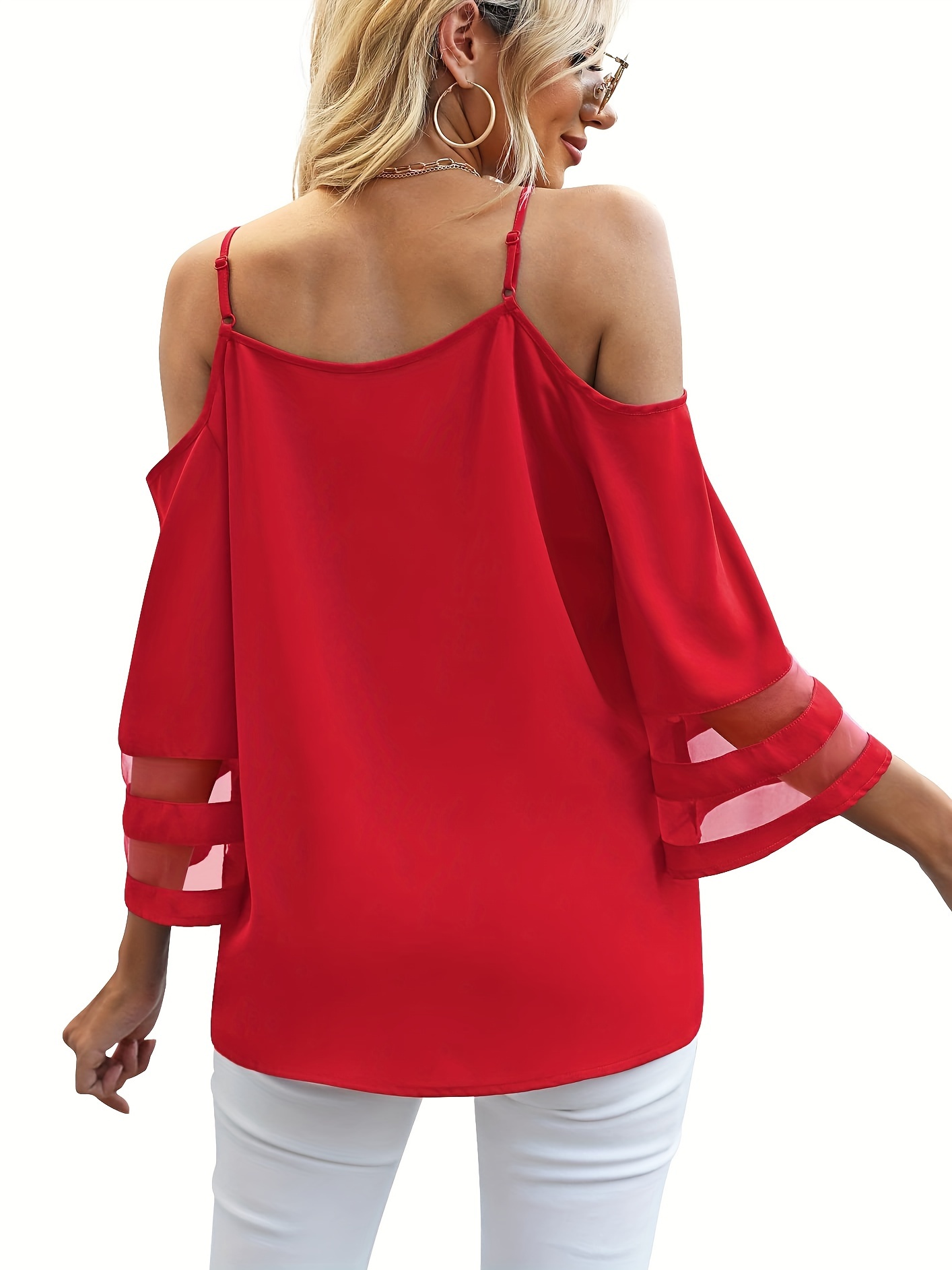 • Chic Sheer Panel Spaghetti Strap Top - Breezy Off-Shoulder Design for Spring/Summer - Stylish Womens Wear
