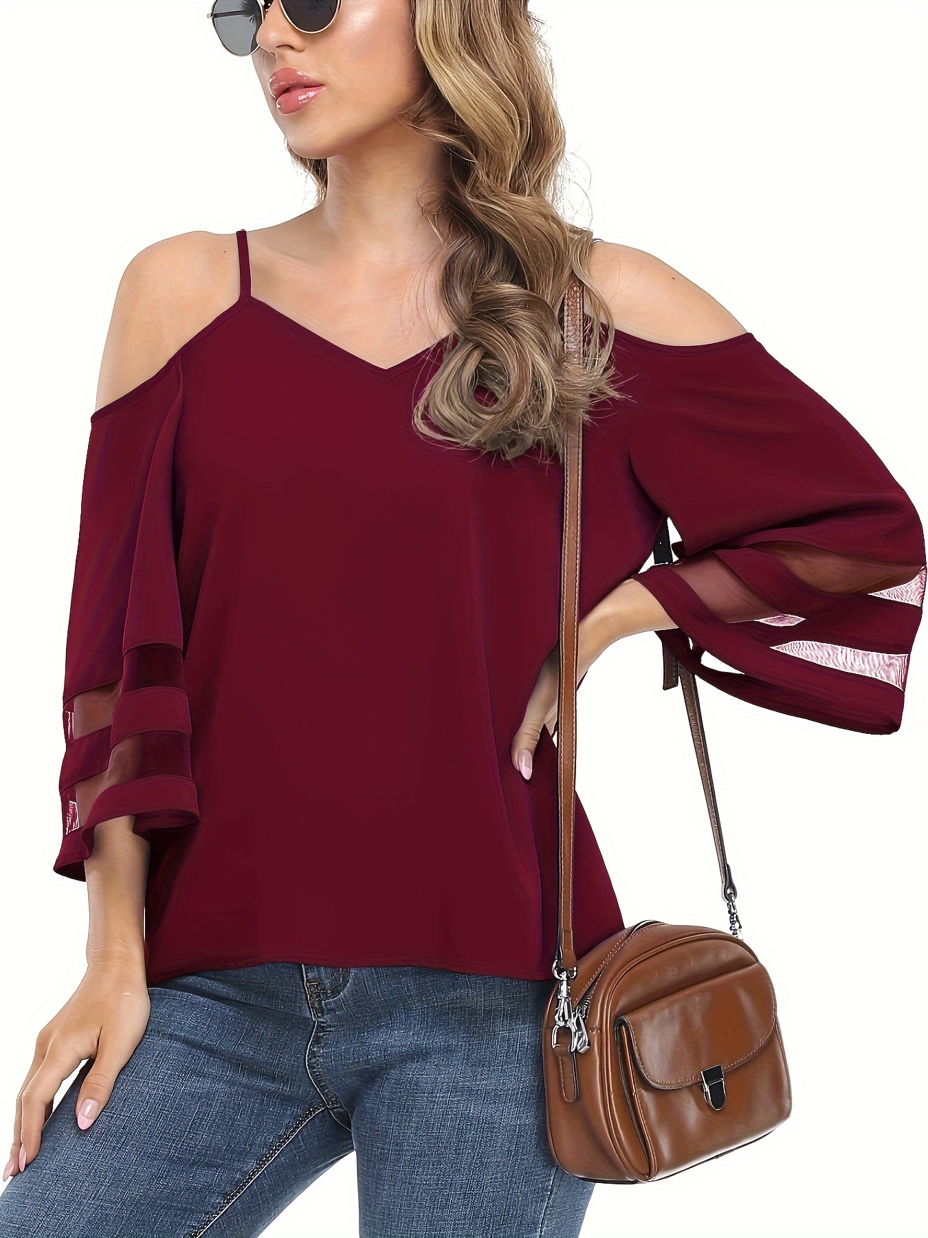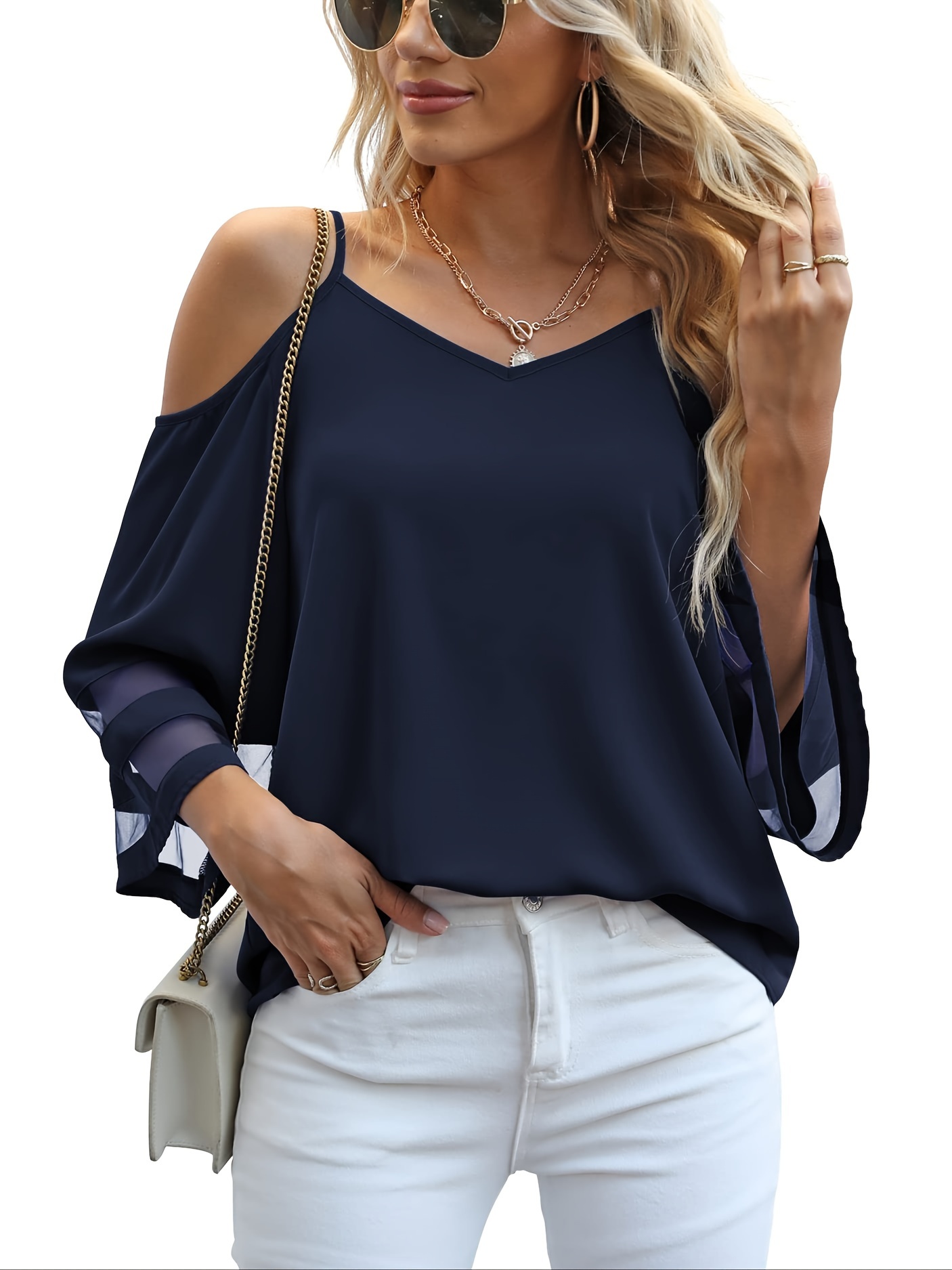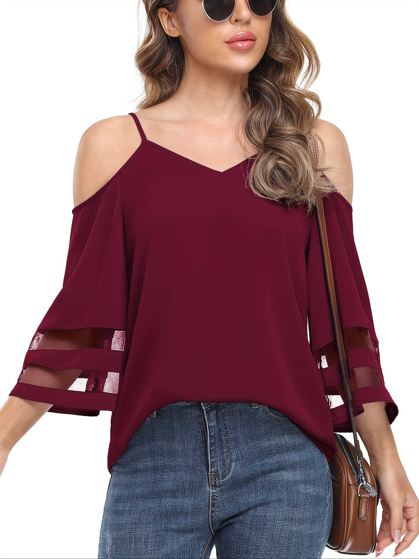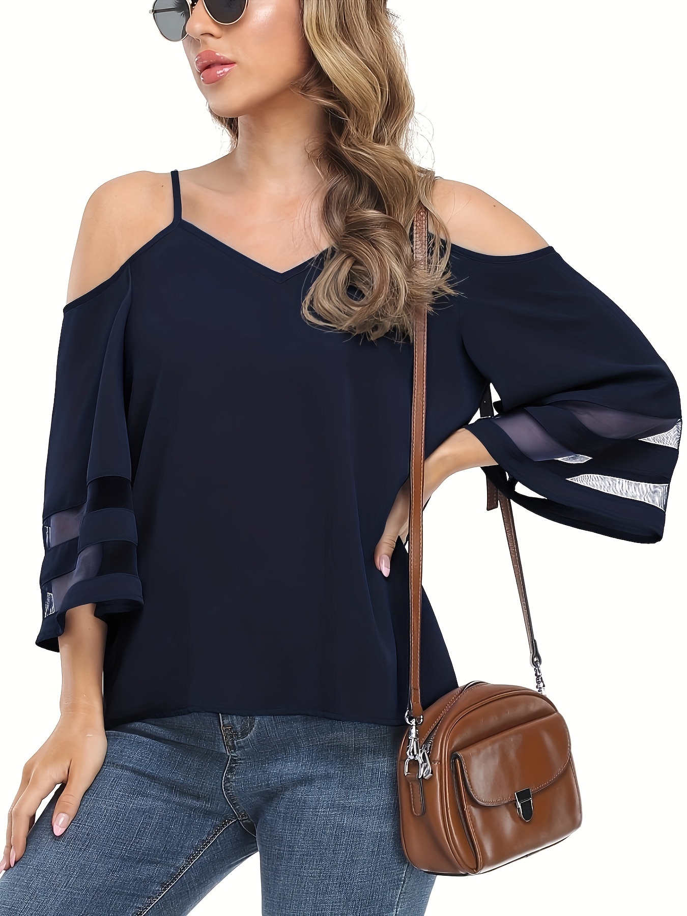 • Chic Sheer Panel Spaghetti Strap Top - Breezy Off-Shoulder Design for Spring/Summer - Stylish Womens Wear
