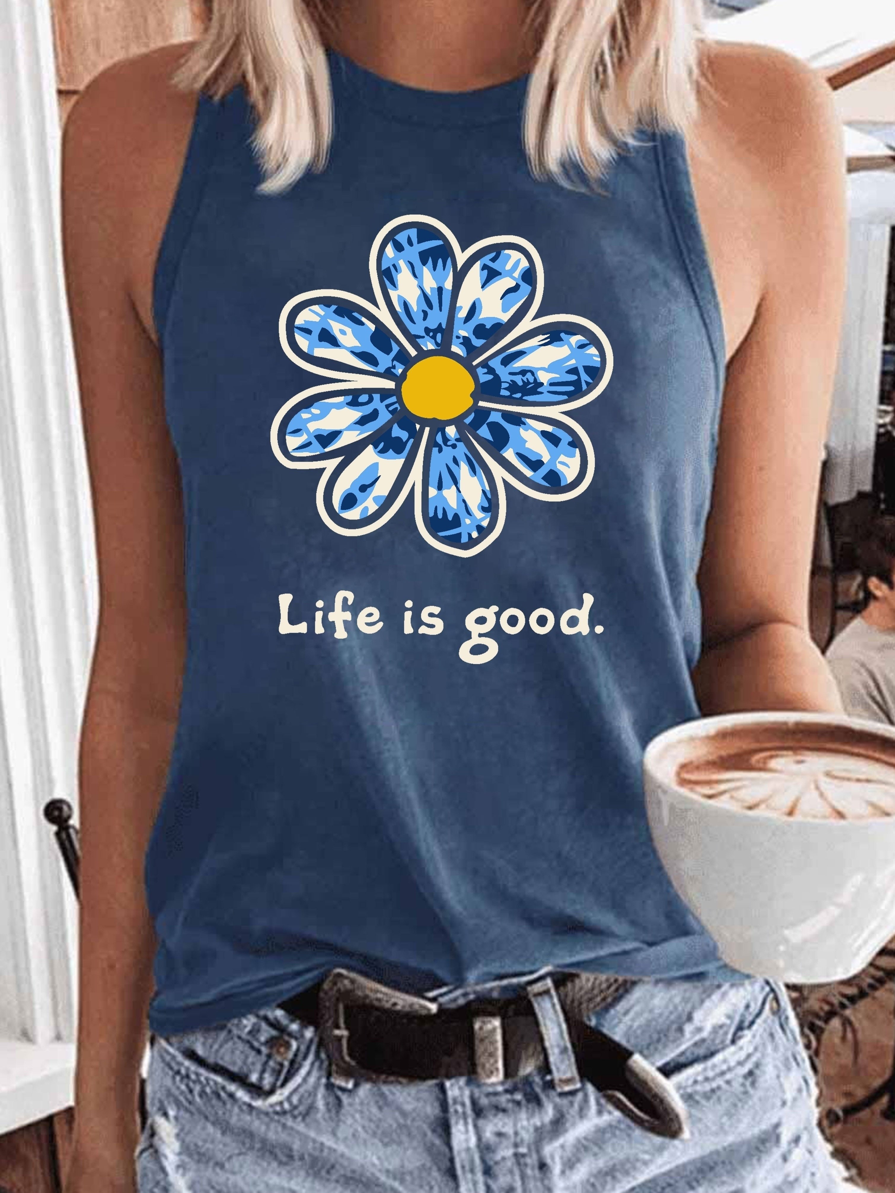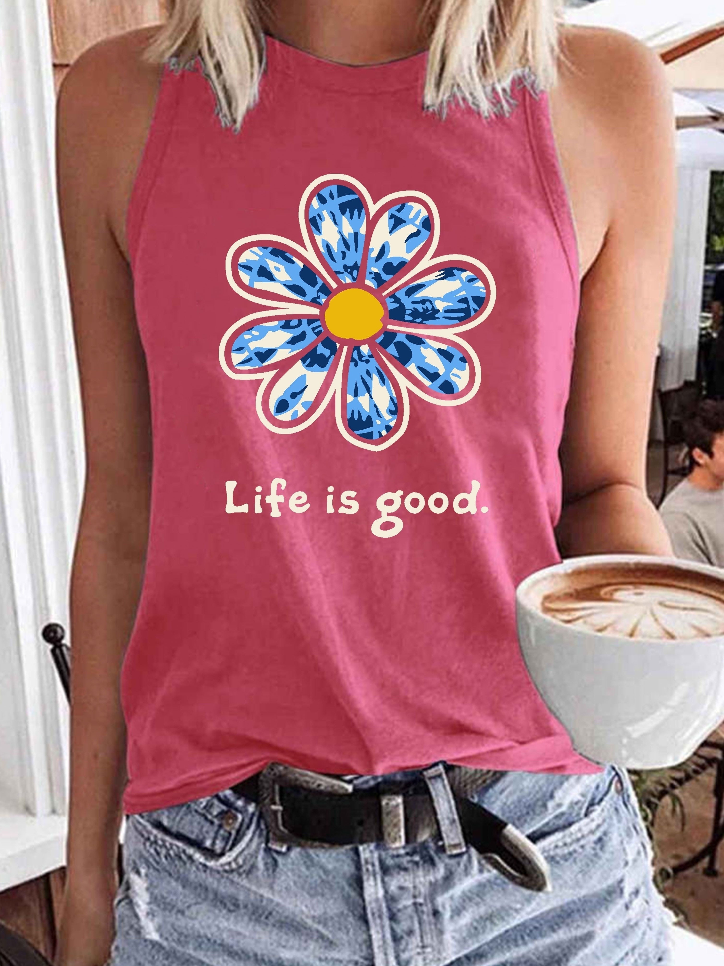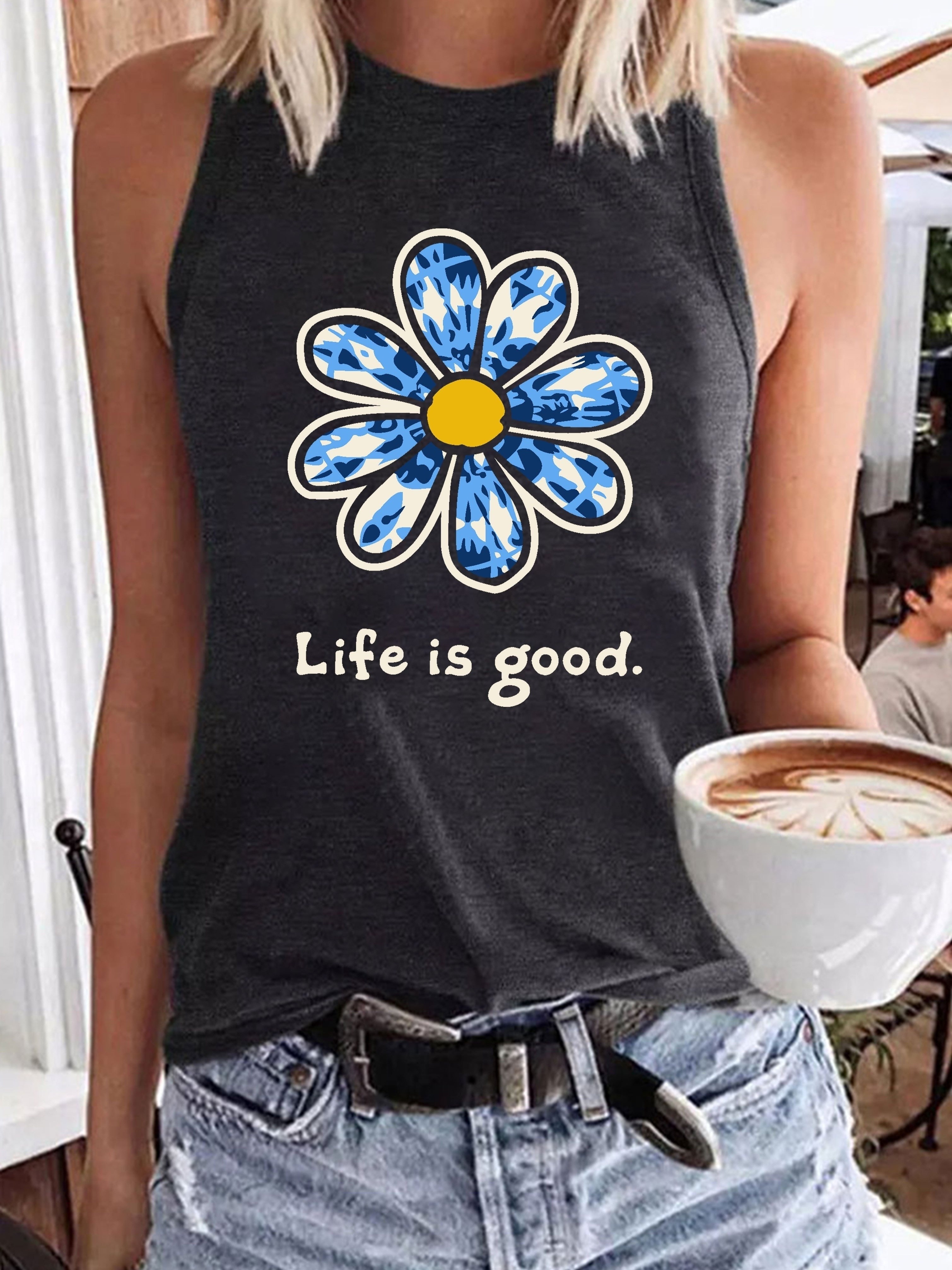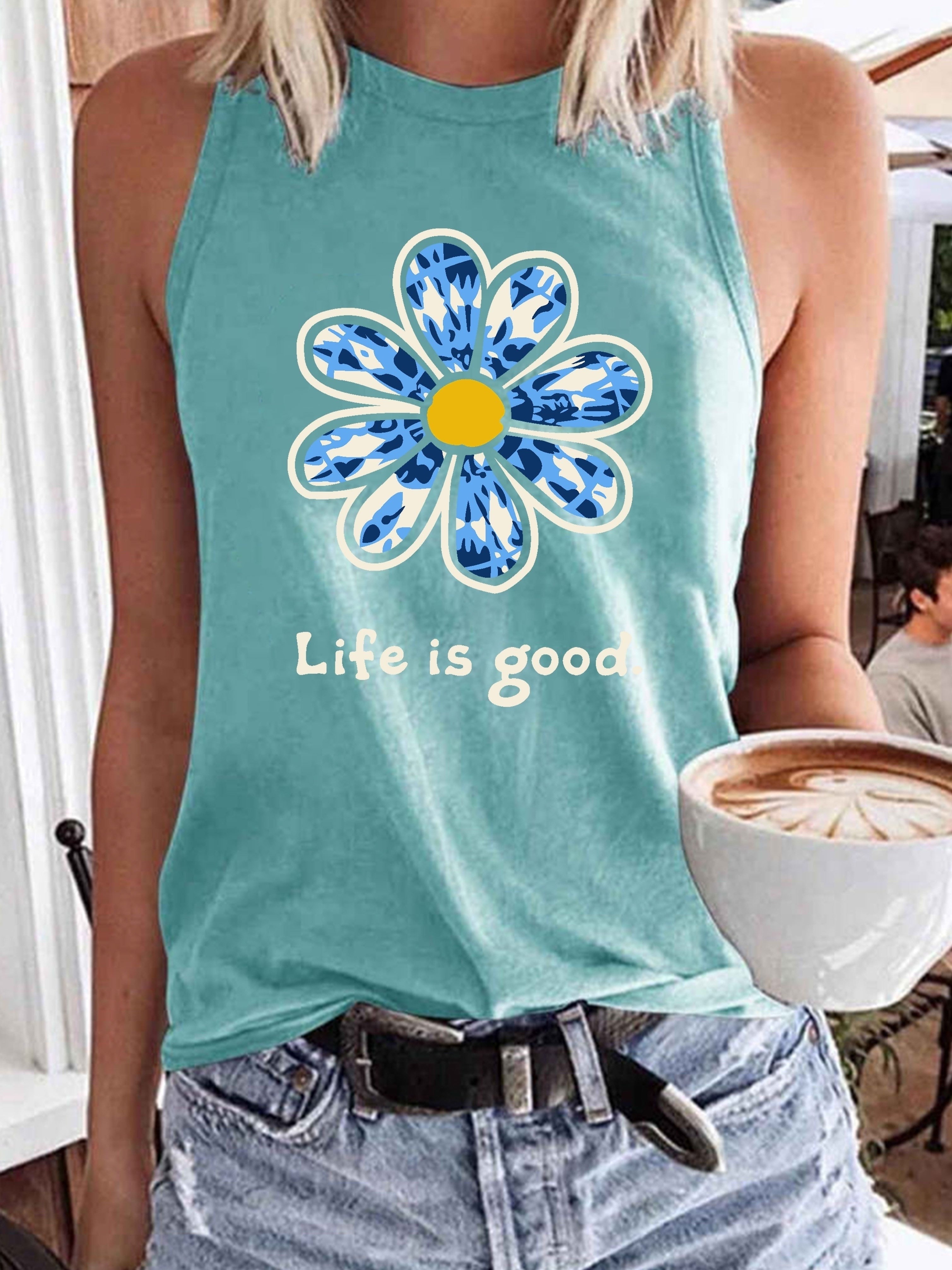 • Floral & Letter Print Top, Casual Crew Neck Versatile Sleeveless Top, Women's Clothing