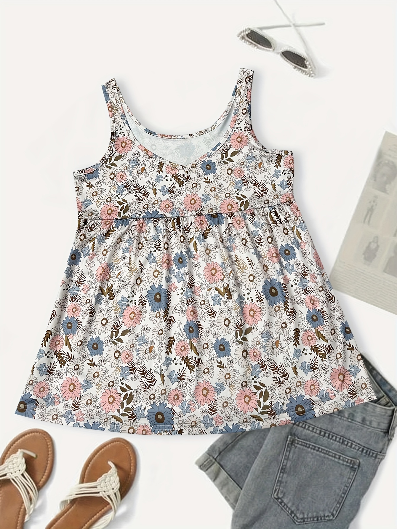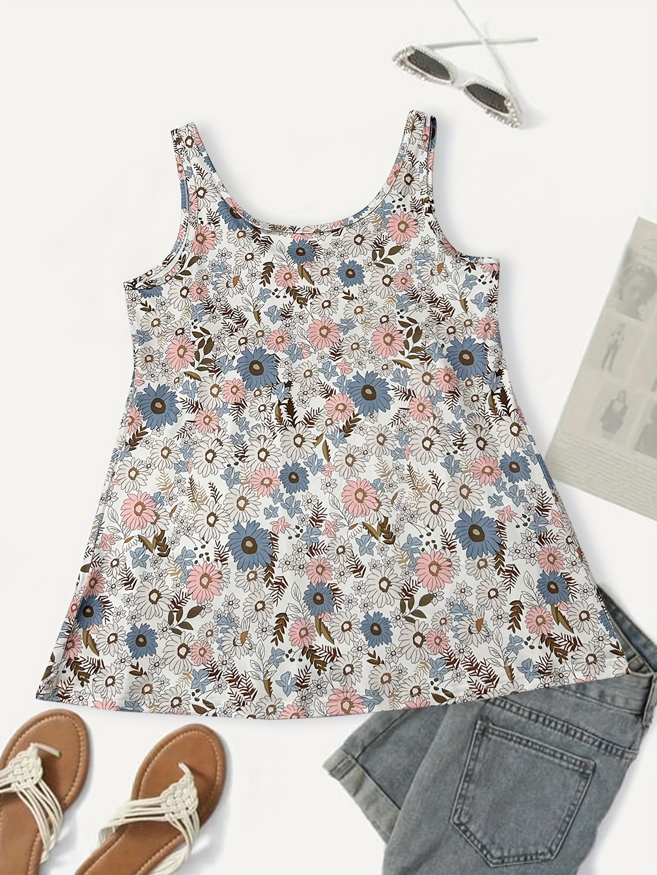 • Floral Print Loose Tank Top, Vacation Style Sleeveless Tank Top For Summer, Women's Clothing