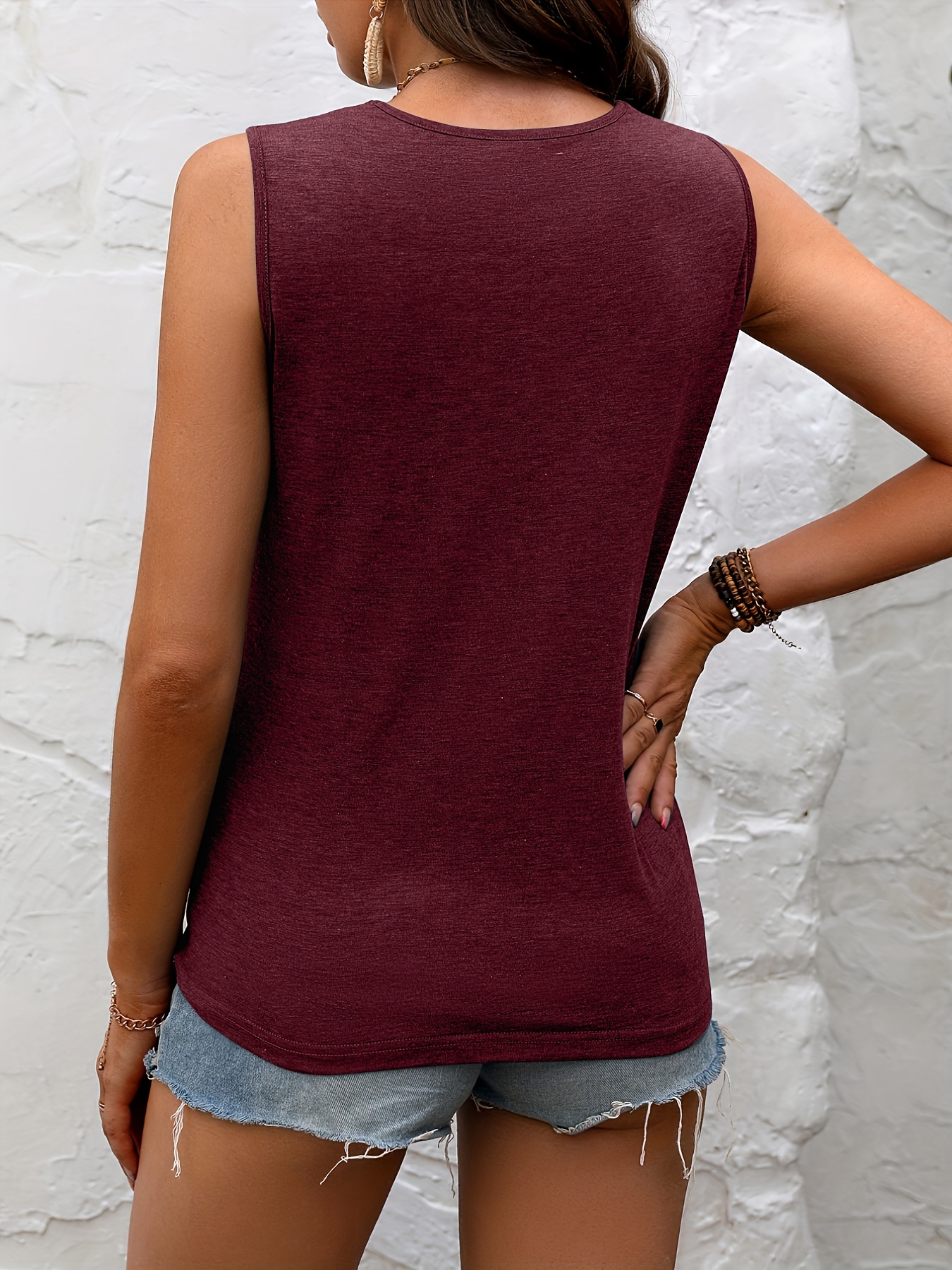 • Lace Stitching Crew Neck Tank Top, Elegant Sleeveless Top For Summer, Women's Clothing