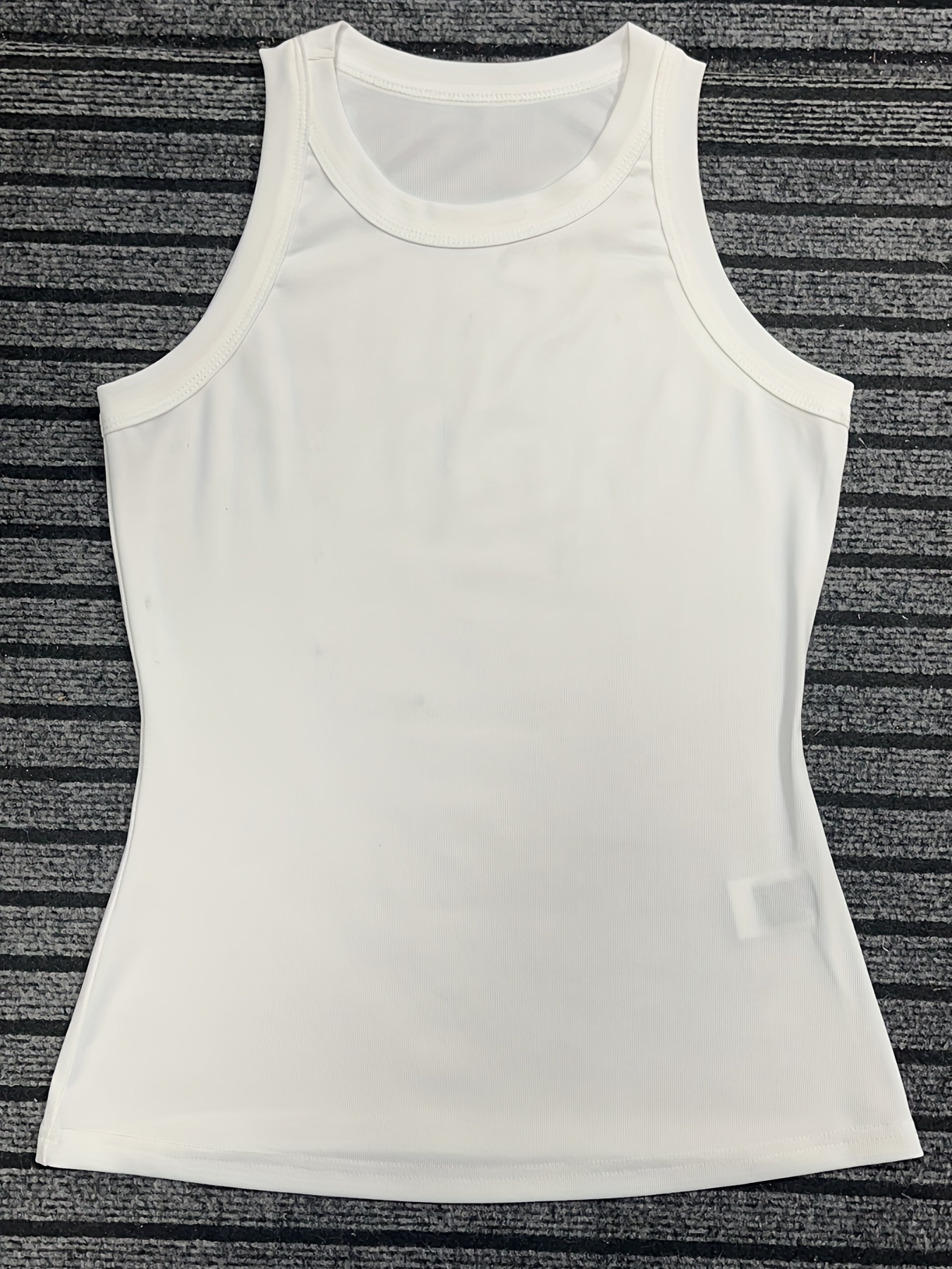 Solid Workout Tank Top, Casual Crew Neck Slim Sleeveless Top, Women's Clothing