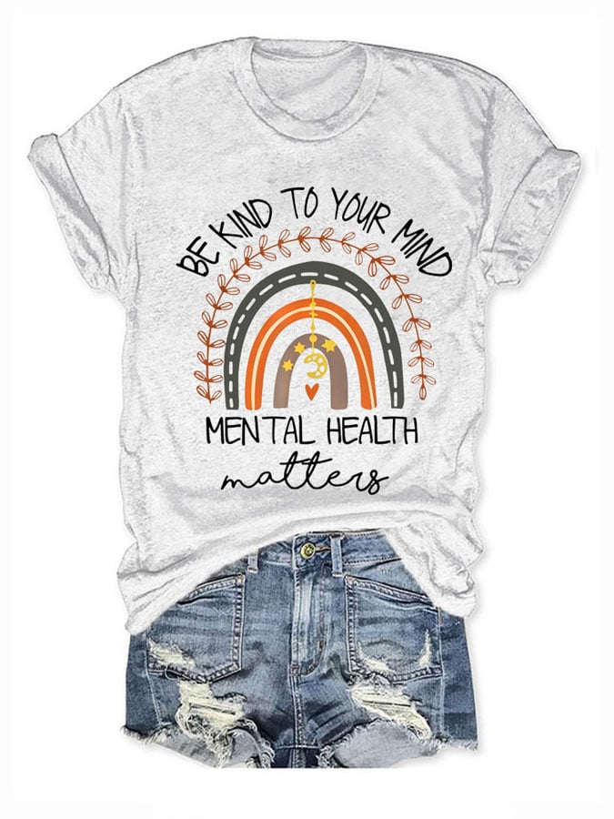• Be Kind To Your Mind Mental Health Matters Print Round neck T-Shirt