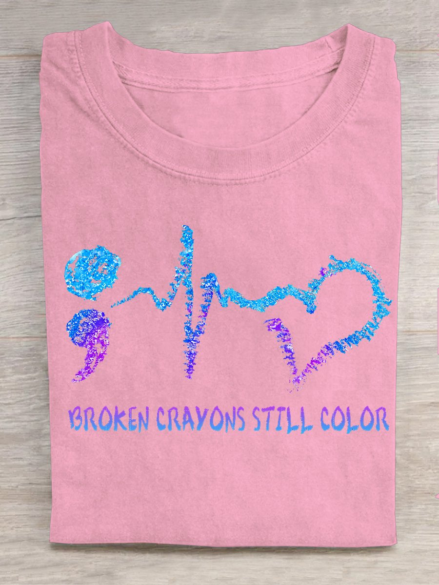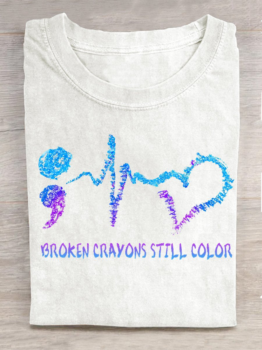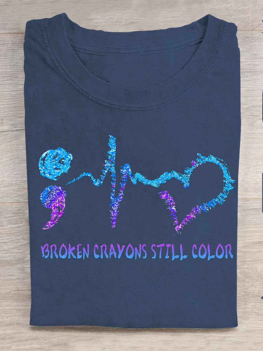• Broken Crayons Still Color Semicolon Suicidal Prevention Print Casual T-shirt