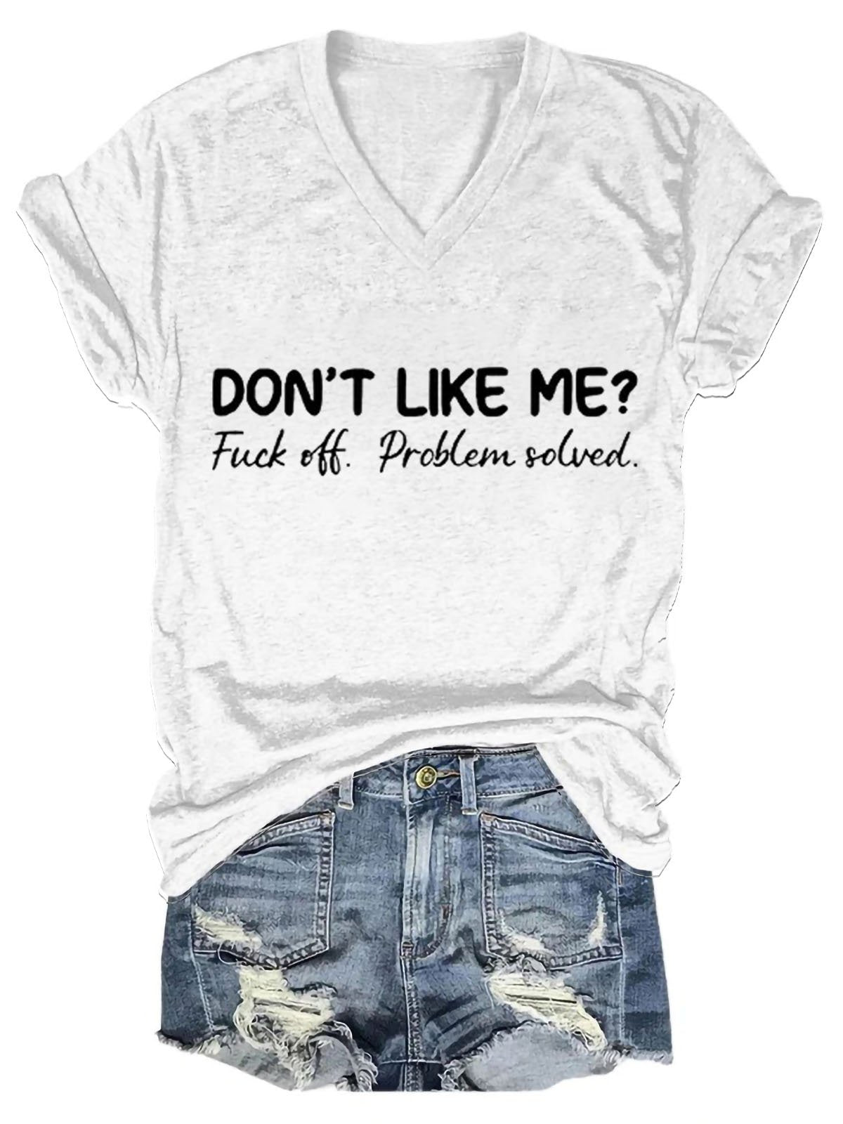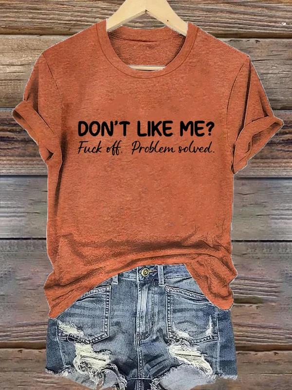 • Don't Like Me Fuck Off Problem Solved Art Print Casual T-shirt