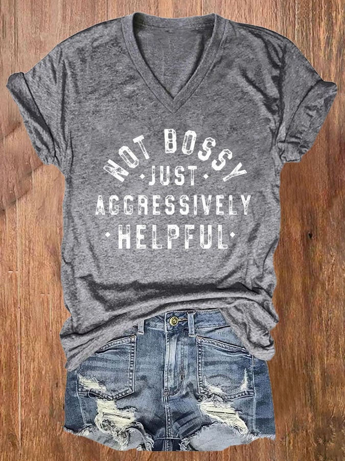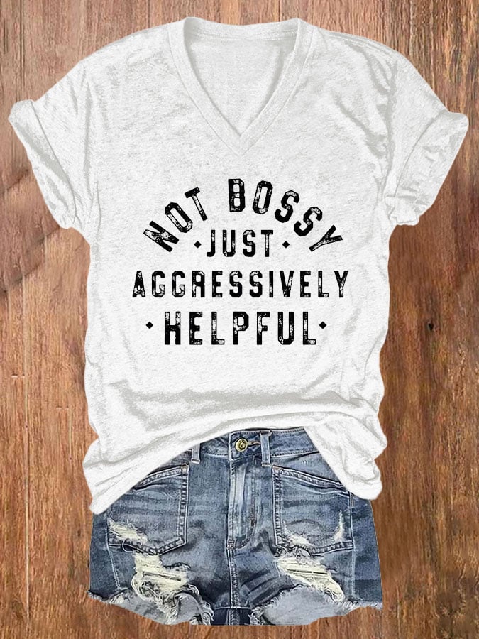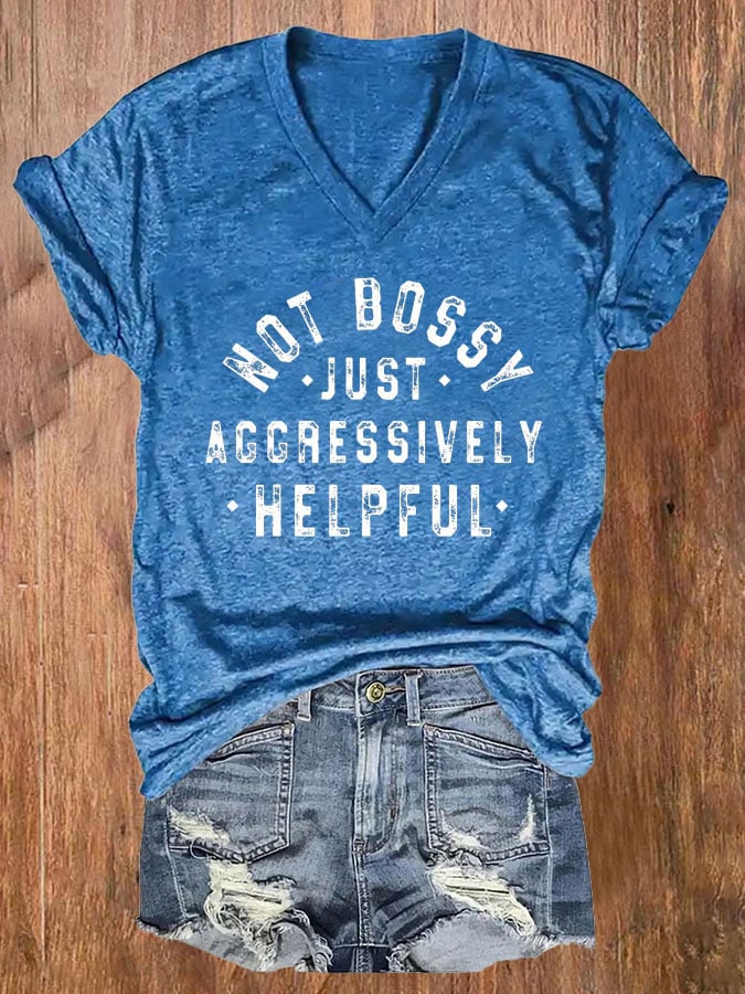 Not Bossy Just Aggressively Helpful Print Round Neck T-Shirt